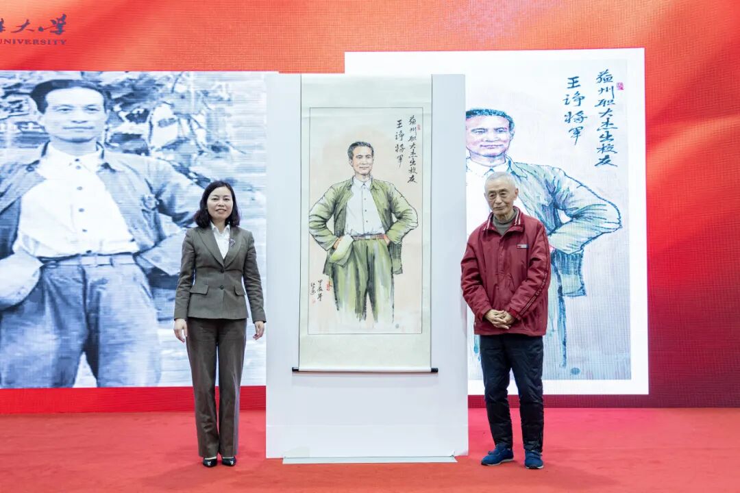 “我国无线电开山鼻祖”王诤中将作为我校优秀校友深受世人乐道,著名人物肖像画家杨纯玉教授上台捐赠王诤将军画像,温贻芳代表学校上台接受了捐赠。