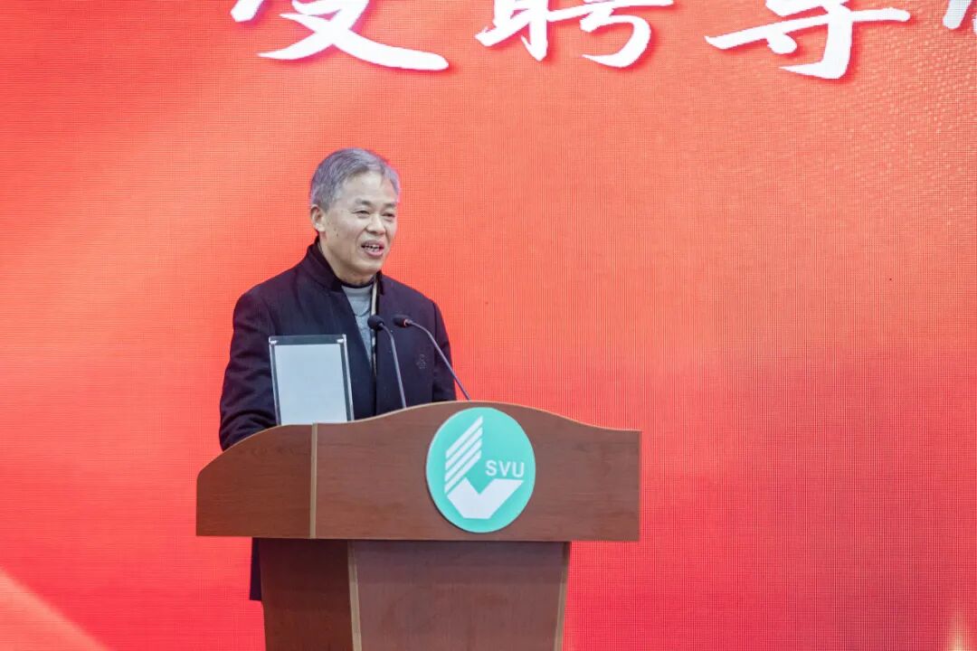 陈道义作为受聘导师代表发表感言,他希冀共同以美育人,提升全员美育素养、塑造人格魅力、涵养美育情怀,打造昂扬向上、文明高雅、充满活力的校园文化。