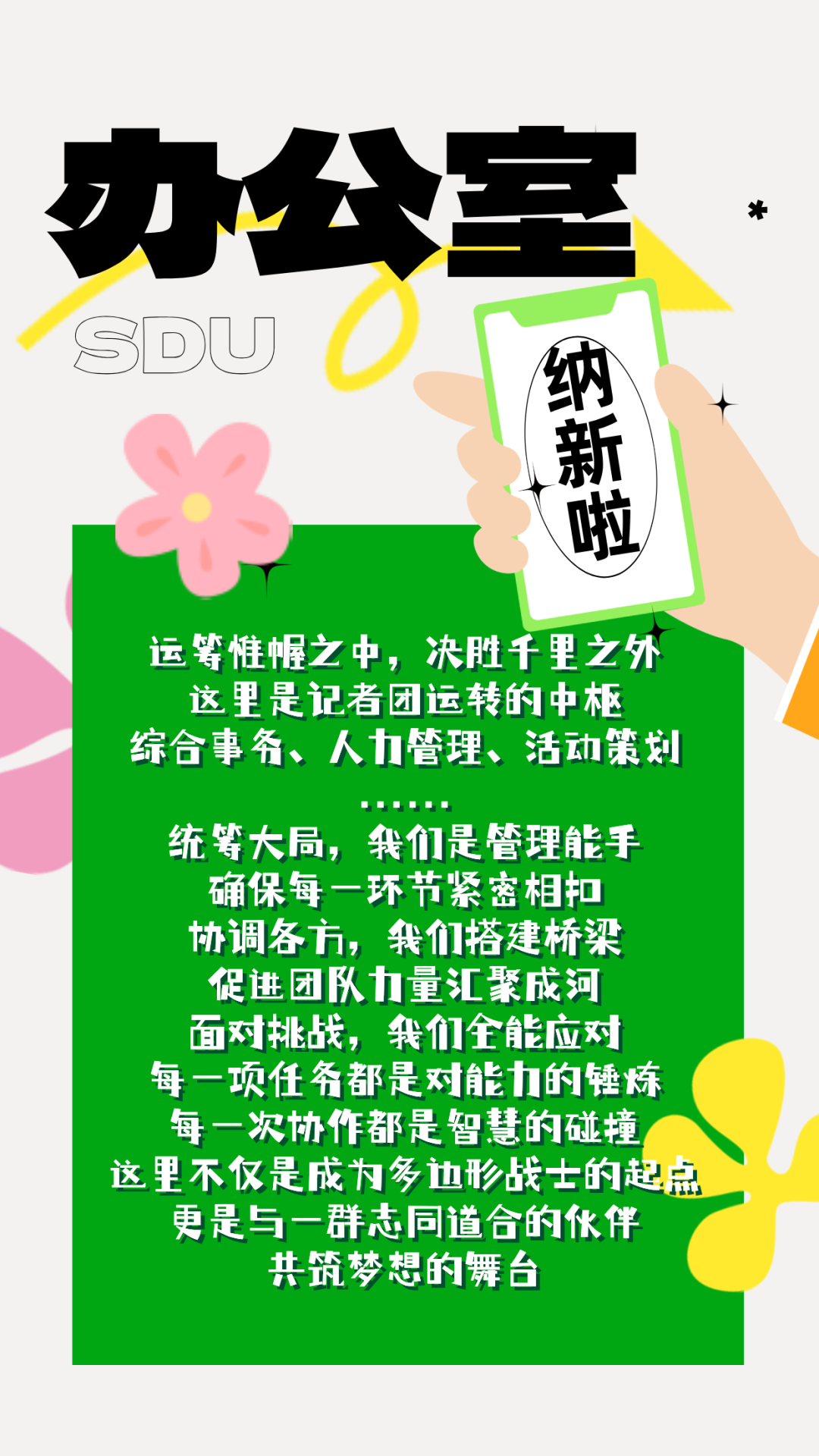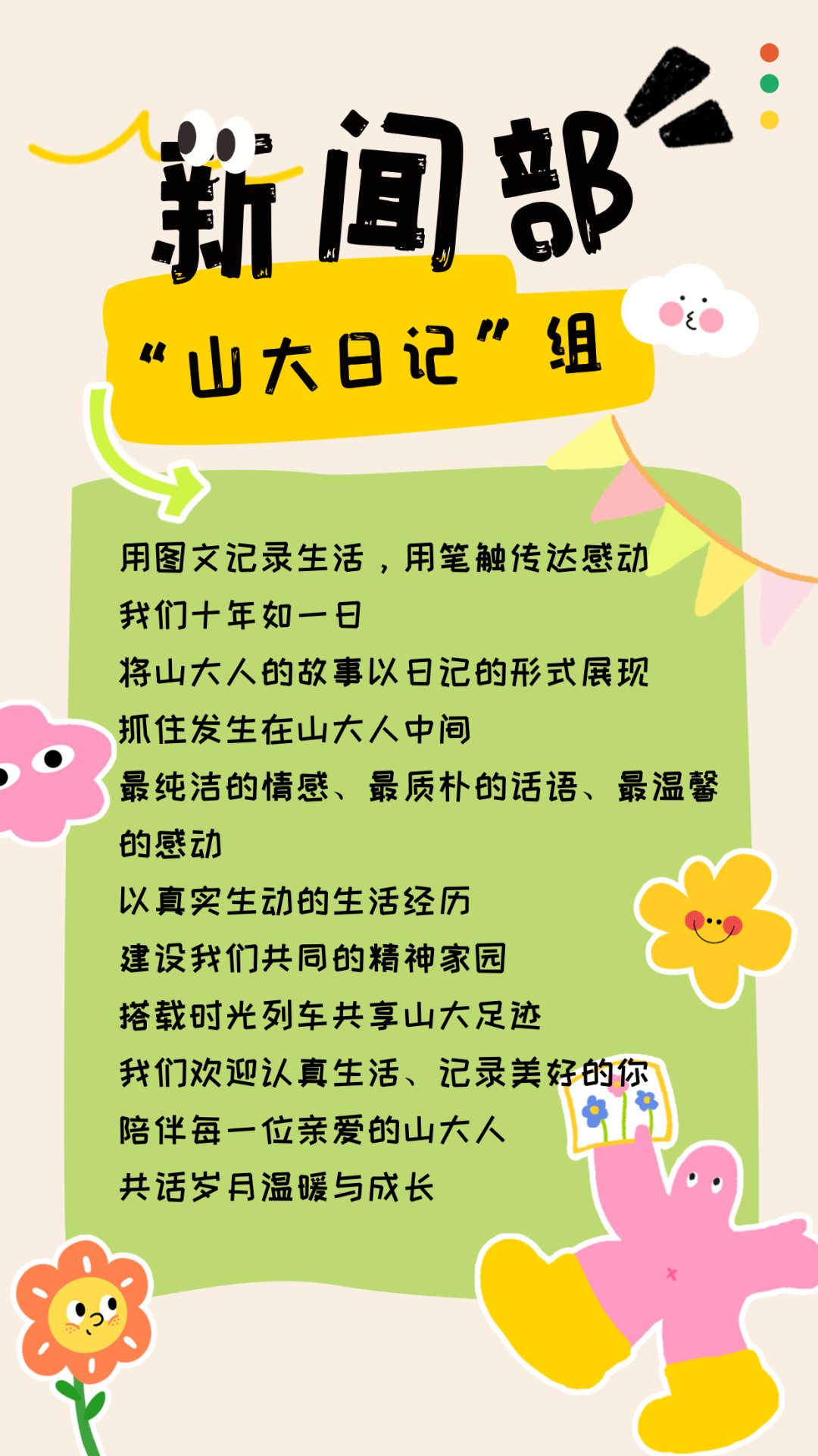 山东大学学生记者团隶属山东大学党委宣传部(融媒体中心),是校级官方学生记者团队伍,参与全校新闻宣传、采访报道、视听生产、选题策划等工作,负责运营山东大学官方网站、官方新媒体矩阵、山东大学报、山东大学广播电视台等校级融媒平台,旗下有“山大日记”“百微山大”“山大人物”等品牌栏目,致力于以青年视野讲好山大故事、以青年胸怀传播好山大声音。
