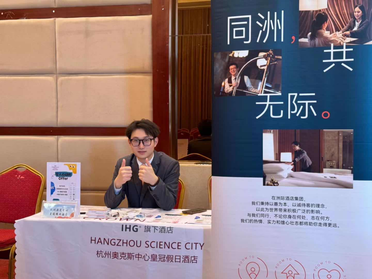 大三实习,我选择了杭州奥克斯中心皇冠假日酒店作为我的实习酒店,并且在结束为期半年的实习后,我选择继续留任直到现在。起初,面对实习和工作,我内心充满紧张和焦虑,不知道自己能不能做好这份工作,也不知道自己能不能坚持下去,但现在,随着工作技能和经验的不断增长,内心的焦虑和紧张已然消散,转变而来的是乐观和自信,并且更加坚定了自己的职业道路。