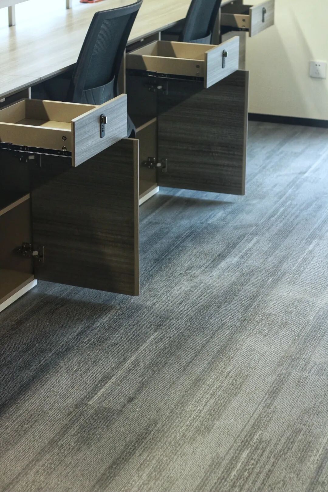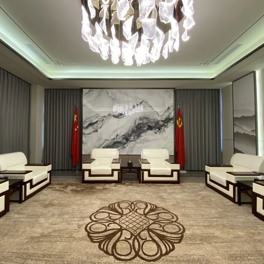 砾象系列简约的线条与明暗的色块互相融合,编织出优雅灵动的地毯纹理,延续办公空间整体宁静雅致的调性。