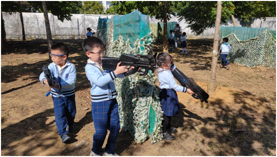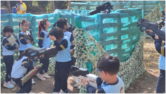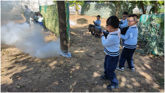 学生们在邦宝CS对战,真实体验在枪林弹雨中穿越,尽情展现智慧和勇气。锻炼其临危不乱、随机应变的意识,提高自我保护和协作能力。