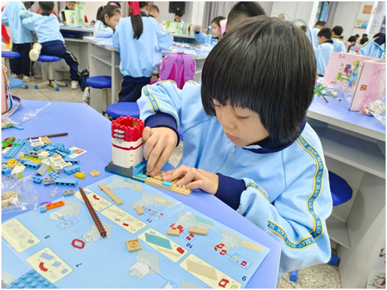 学生们通过动手搭建主题积木造型,构建完整场景。锻炼动手能力,培养学生们的想象能力和观察能力,发展空间知觉,提高创造力。激发其去探索和挑战自己创造力的潜质。