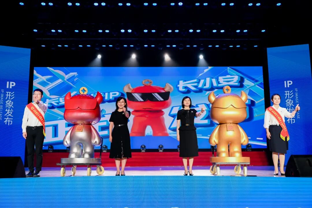 发布会上不但有妙趣横生的“长小安”亮相动画片、精彩的人偶舞蹈表演,朗朗上口的IP主题曲更是将活动推向高潮。随着象征着“财富”和“稳健”的两座大型手办揭开帷幕,长安银行品牌IP“长小安”正式发布。