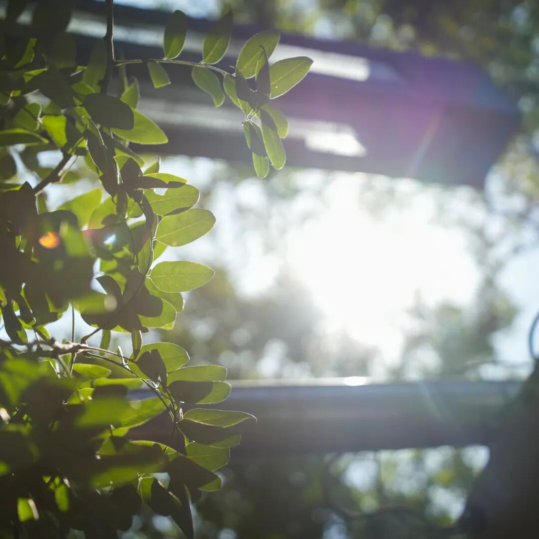 洒在红砖与绿树间