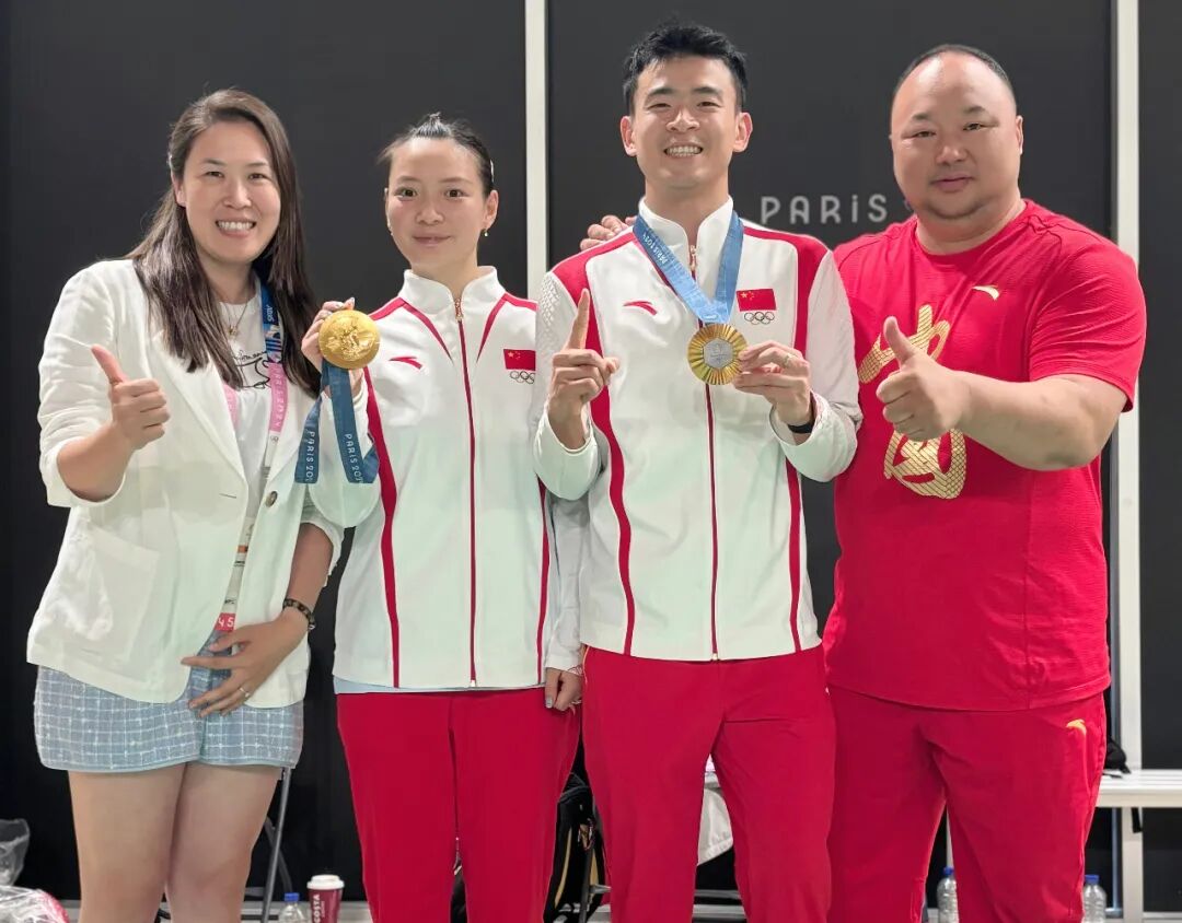 👆 高崚教授与巴黎羽毛球混双金牌得主“雅思”组合以及张军主席合影
