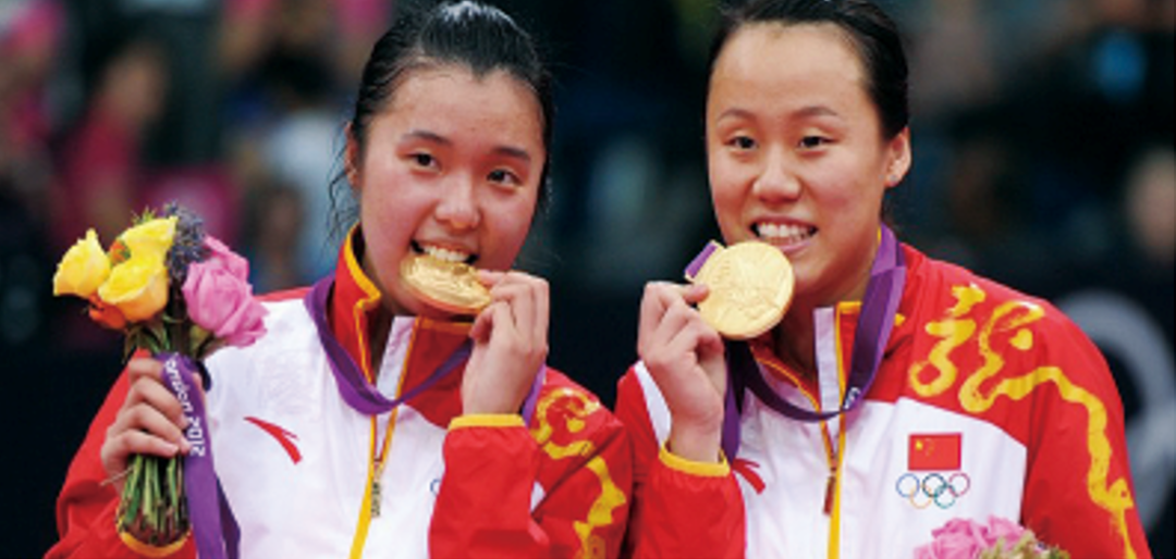 👆2012年,我校学生田卿(左)与队友赵云蕾搭档获得伦敦奥运会羽毛球女子双打冠军