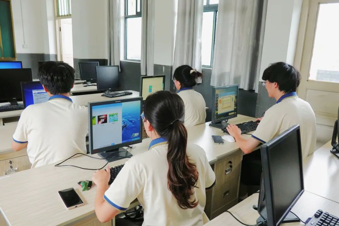 由于机房场地有限,前来上课的同学较多,因此一台计算机至少要供两位同学操作使用,这便对他们的协作能力提出了考验。“你先来吧,我先看你操作。”“这个我会,我教你!”“下一步应该点哪里,我们问问老师吧。”一来二去,他们也便成了关系最铁的“电脑搭子”。