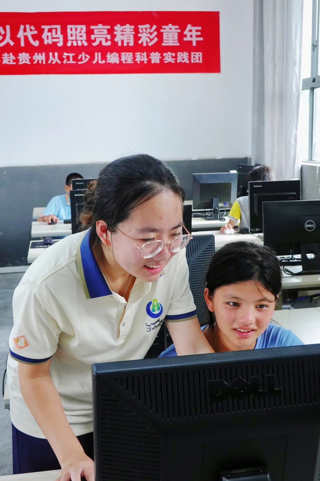 “看着他们每天兴冲冲地结伴来上课,满怀对新鲜事物的好奇与渴望,我第一次切实体会到普及计算机知识对于助力乡村教育振兴的意义,这对我来说是身心的启迪。”实践团成员高嘉婧说。