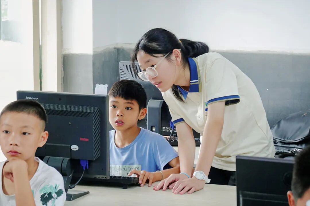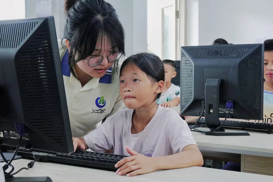 “清晰记得第一次开展上机实践课时,看到了同学们满怀期待的眼神和那双局促的、不知道摸哪里的小手。”实践团成员程淑婷说,“第一次接触计算机,他们小心翼翼地操作着鼠标和键盘,仿佛在进行一场精密的科学实验或是艺术创作!”