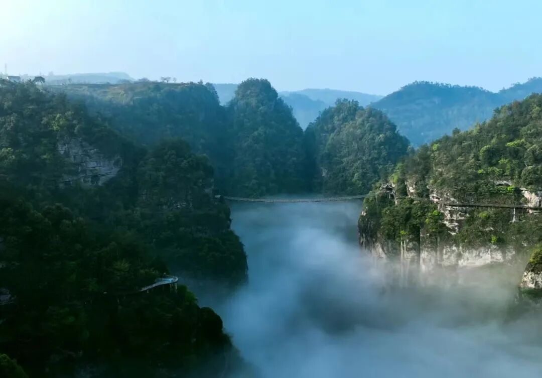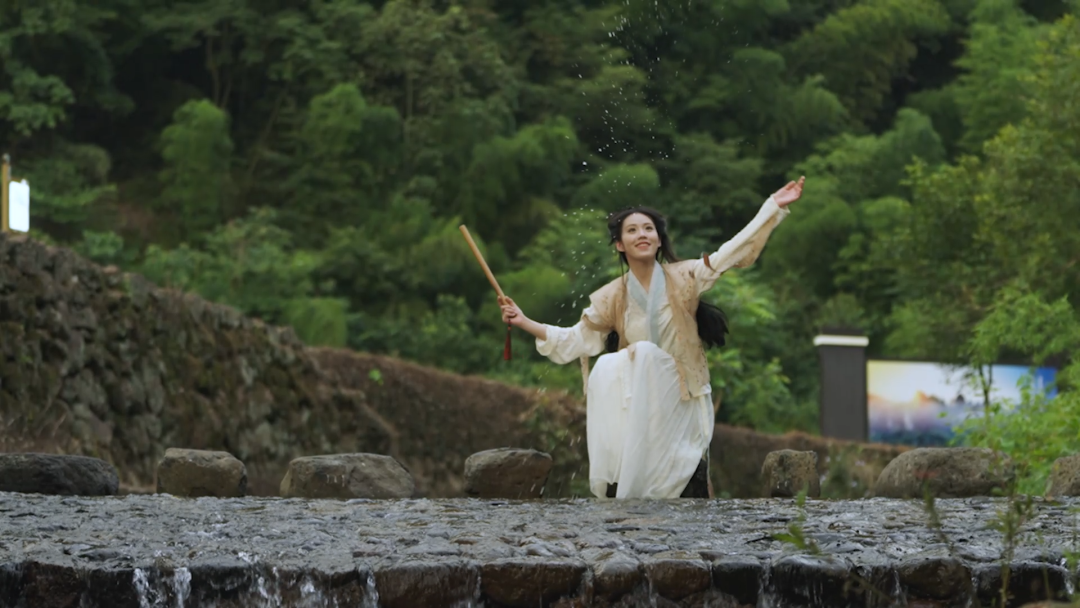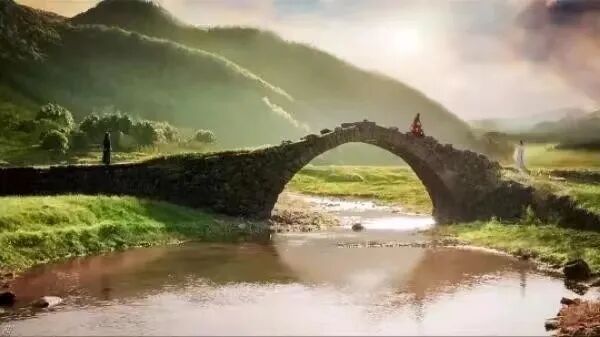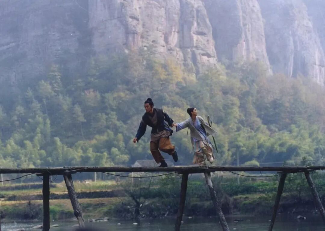 十九峰独木桥上,郭靖拉着黄蓉走过