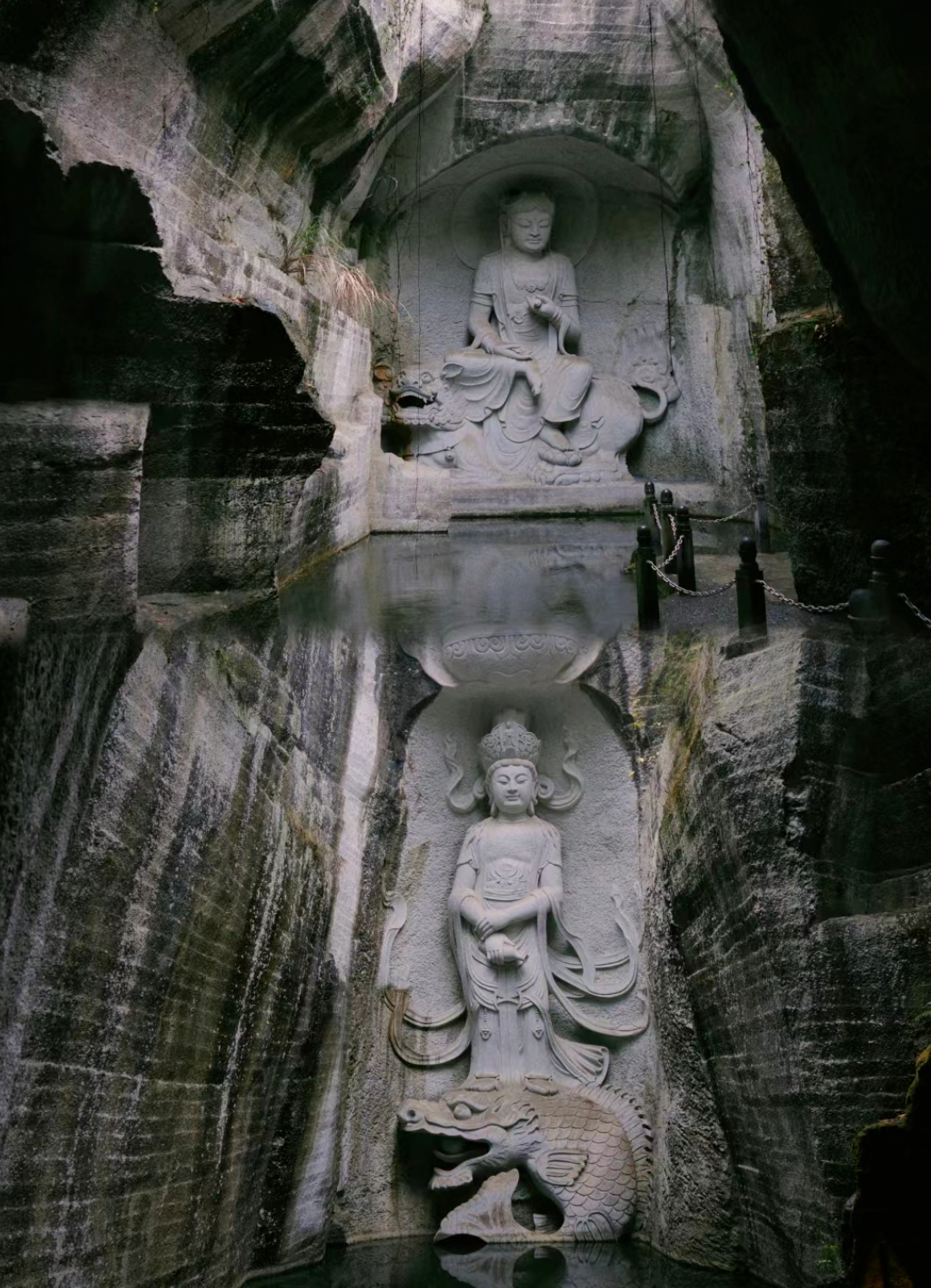 僧过不知山隐寺,客来方见洞开天。新昌大佛寺,始建于公元345年,距今已有1600多年历史,寺内名胜古迹众多,坐拥江南第一大佛与亚洲第一石窟卧佛,是全国重点开放寺院。这里群山环抱,山青谷翠,岩石嶙峋,曲洞四环,飞瀑泱泱,池明如镜,古树修篁,是观光祈福的绝佳去处。