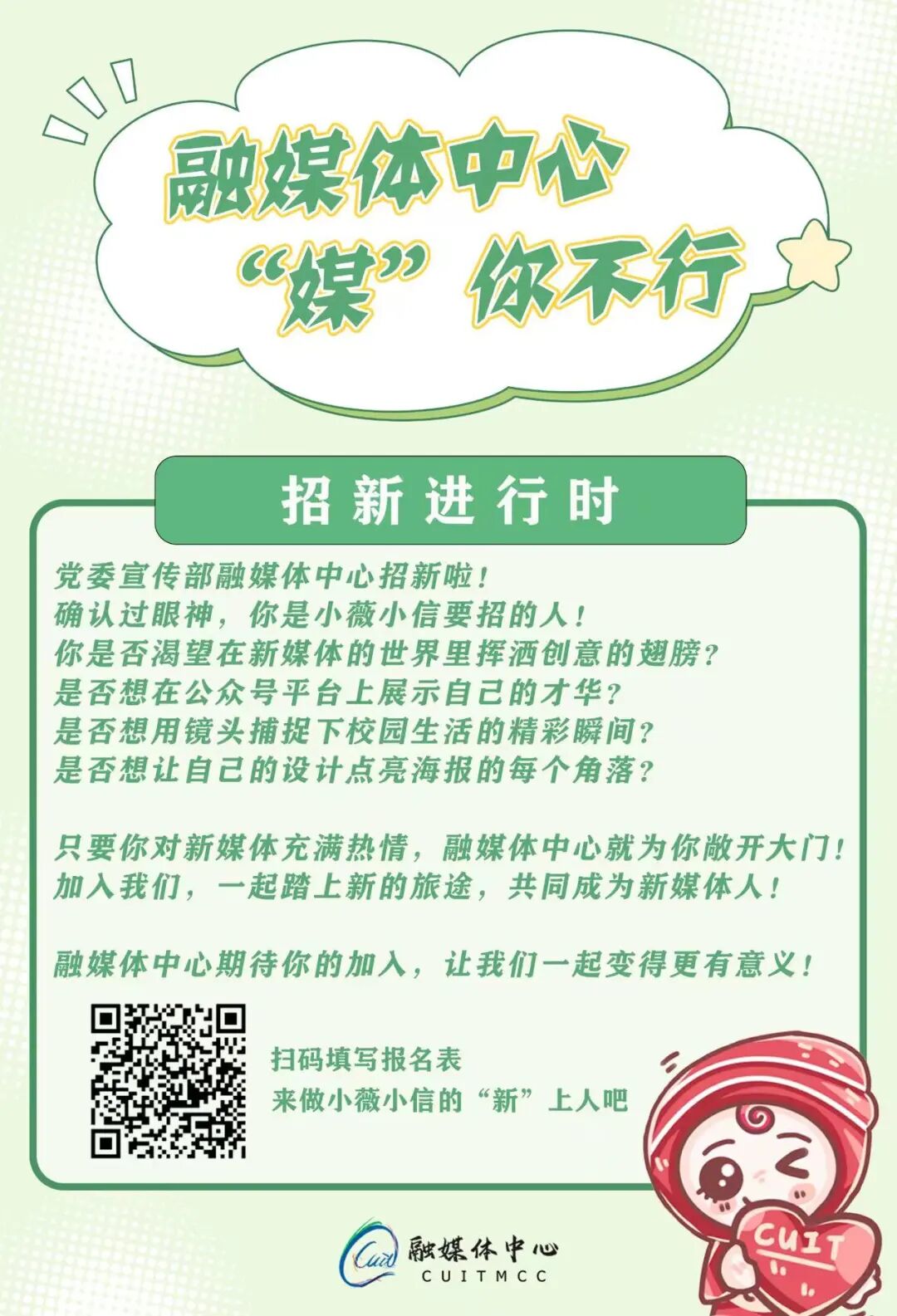 加入融媒体中心招新QQ群(942842851)