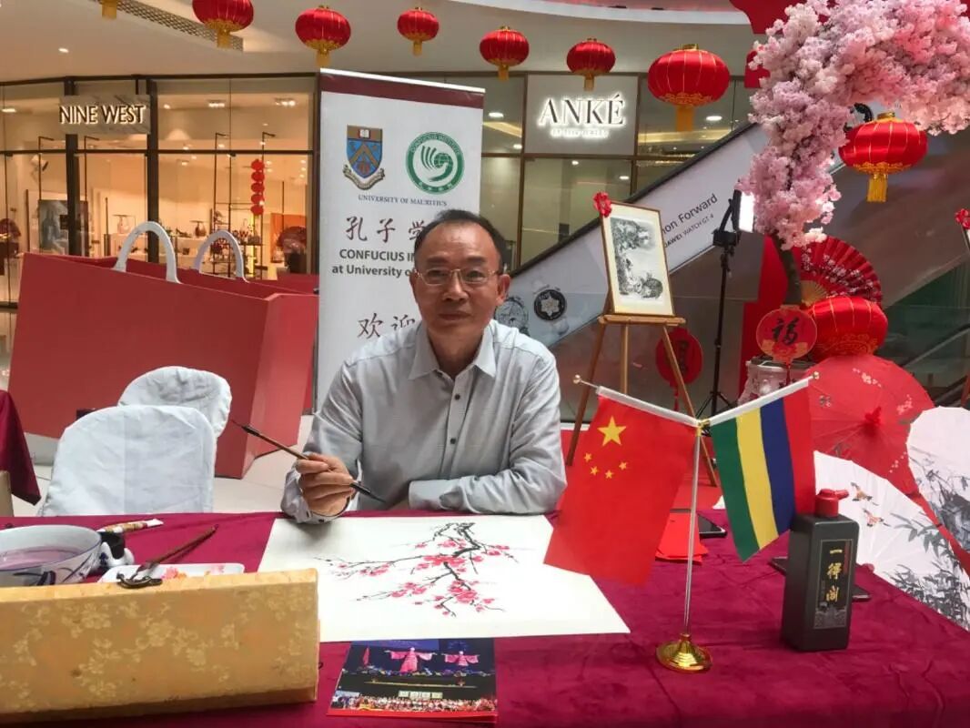 毛里求斯大学孔子学院经常与当地学校、文化机构合作,充分利用学校及其他公共空间举办包括中国书画、中国茶艺、汉服等主题鲜明的中国文化活动。张康夫老师表示,中国书画推广主要通过现场展示、技法传授、观众体验等,让当地人感受中国书画的特有韵味,感受中国传统文化的魅力。