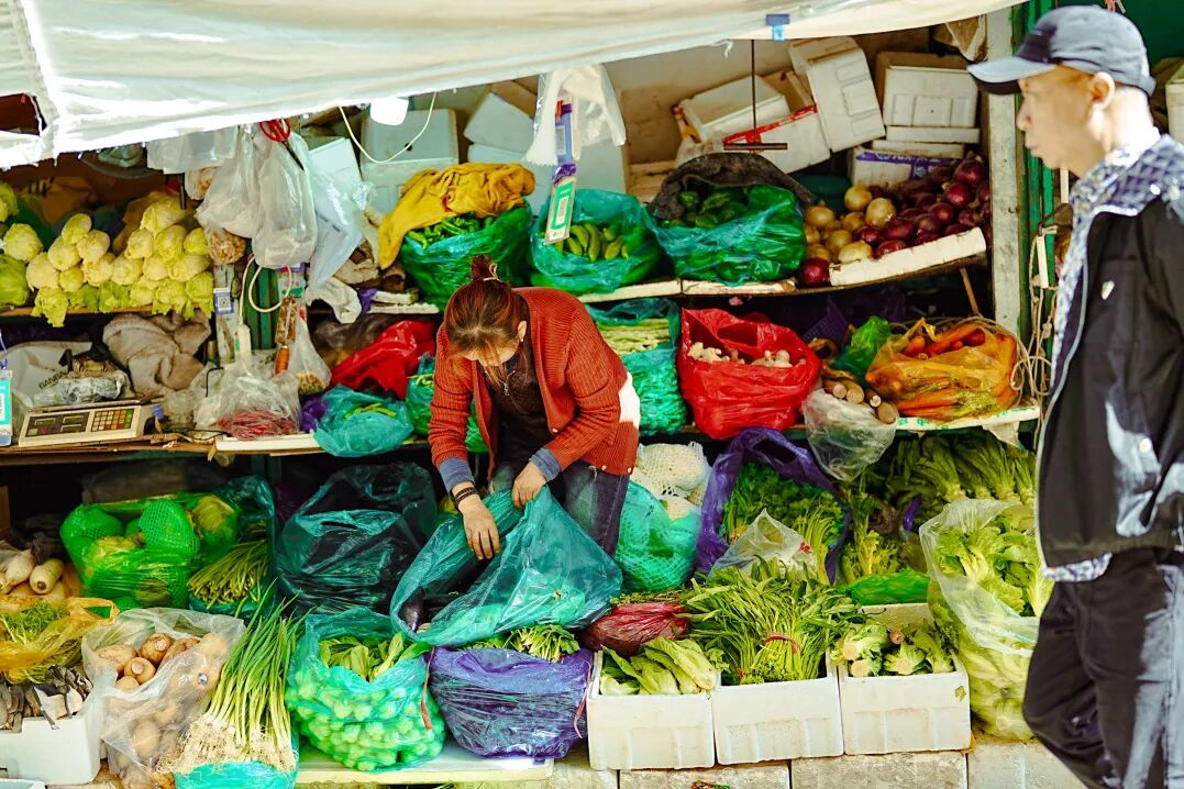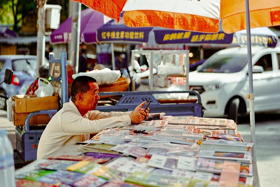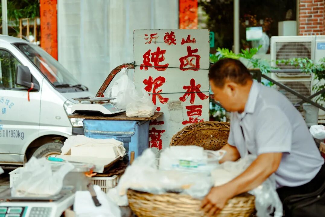 早市上的美食主打一个“现做”。排队的工夫可以观察一个白吉馍从擀面、烤馍、剁肉的整个过程。久违的现金 “找零”,听着本地人操着一口“济南方言”为砍价而拉扯,推着小车为了多找几家比价而在人流里来回穿梭,构成了探索济南生活鲜活的画面。游客们也跃跃欲试,趁机学上几句地道的“济南话”融入其中,倒不是为了省去几毛钱,反而用这几毛钱沉浸式享受本地人的同款乐趣。济南老城的慢生活渗透进生活的每个细节,而体验老城的慢生活,就从早起的早市开始放轻松。