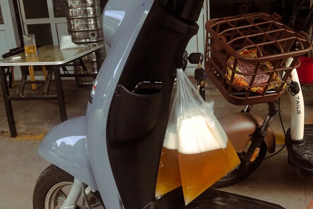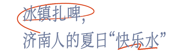 泉水和扎啤是专属于济南鲜活的标签和符号。近40°C的夏夜里喝杯扎啤,贯穿很多济南人从小到大的记忆。街头常看到有人拎着塑料袋,里面装着黄色的液体往家走。这正是济南人的解暑神器——袋装散啤,也叫扎啤。不同于瓶装酒的酿造加工过程,扎啤是啤酒发酵成功后,不经工业过滤保鲜处理,直接从罐中分装的鲜啤酒,保质期短,3.5元一杯,口感上像是啤酒圈的“老冰棍”,清爽冰镇让人快速褪去夏日的焦灼感。