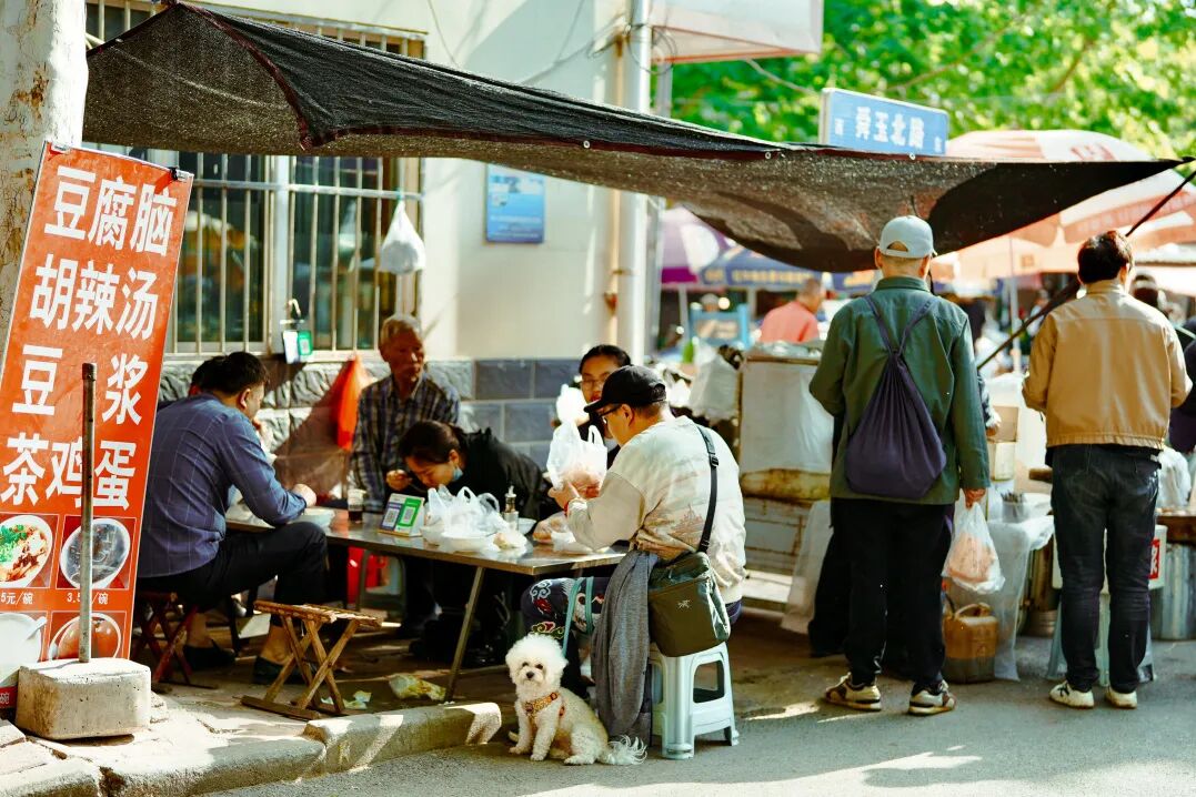 值得一提的是,济南的早市,大都是小贩们在某个小区附近的道路两边临时性的聚集,早上五六点开始,八点就会散去。荆山路早市,舜玉北区早市……从名字上就能轻易分辨它的具体方位。倘若是想要寻一个全天候的,那大概就是诸如“民族大街”这类的美食街了。
