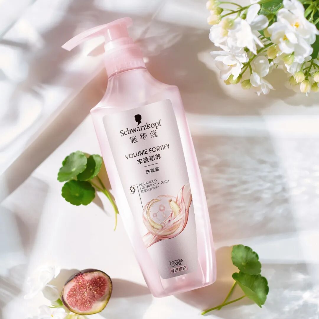 用施华蔻丰盈韧养洗发露轻轻揉按头皮,每一处发根都能被清洁到,头发散发出如仙女般清新的无花果香气……
