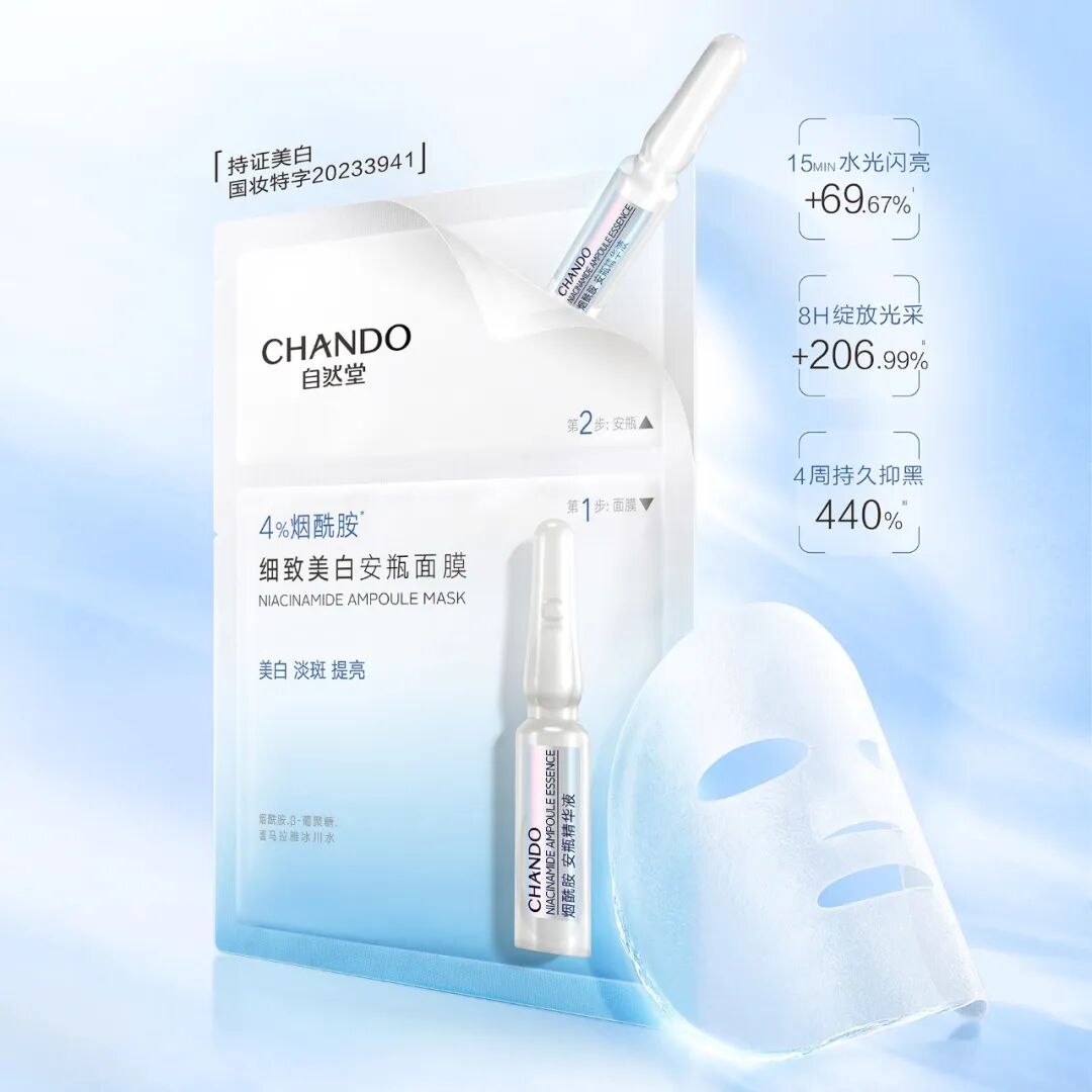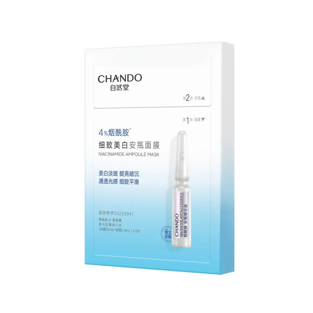 此时,再贴上一片自然堂烟酰胺安瓶面膜,让皮肤在水润透气的状态下,接受来自烟酰胺的滋养吧!