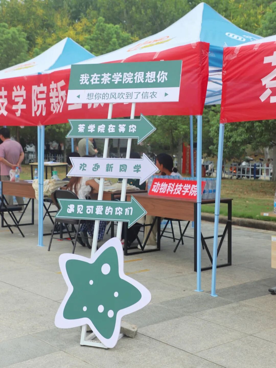 图书馆门前融媒体中心迎新帐篷