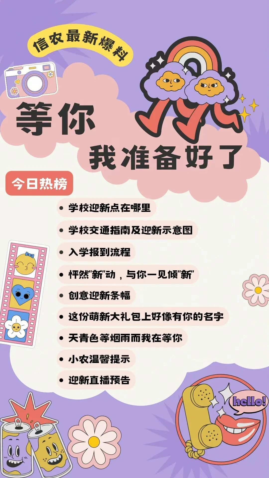 1.开学当天人员较多且气温较高,同学们要注意安全做好防暑工作,带齐资料证件、生活用品、学习用品。
