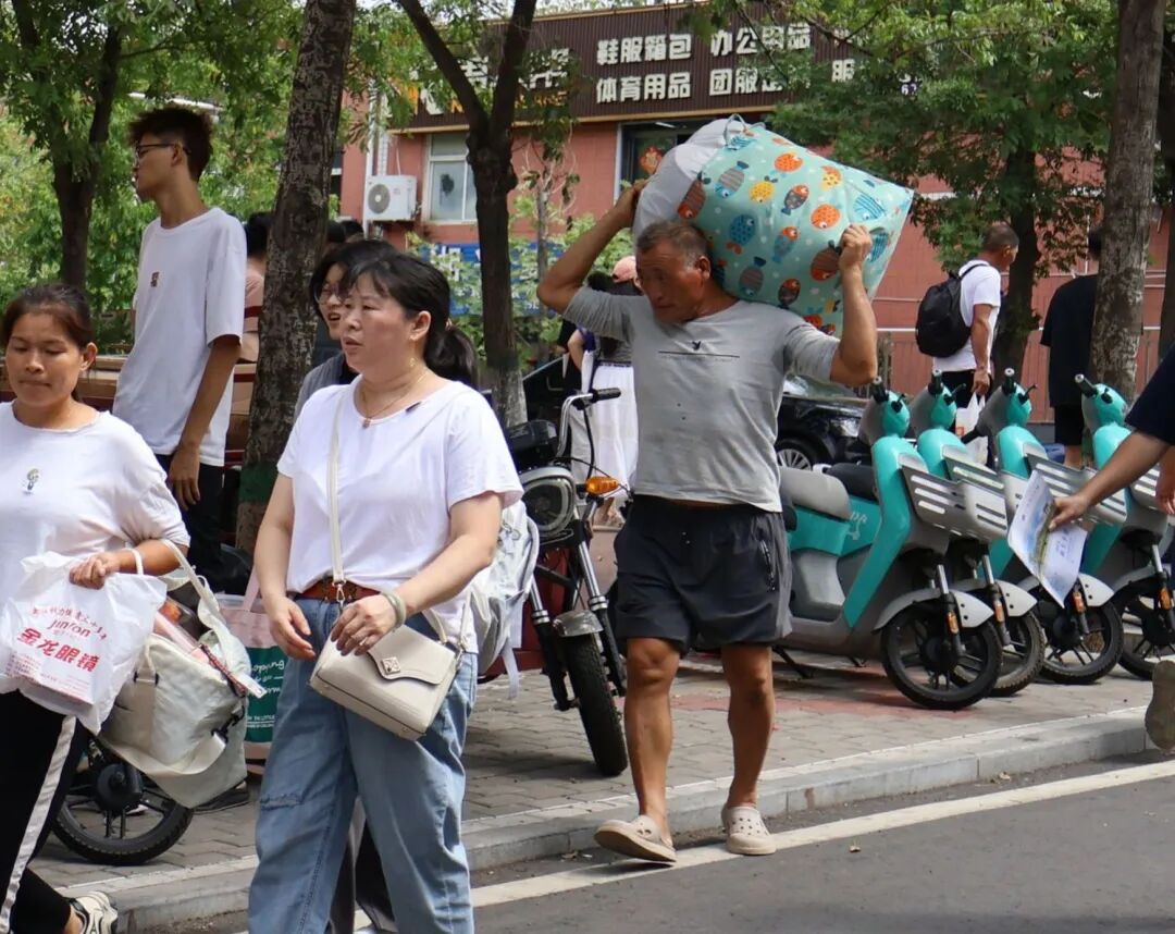 校园里,与新生们并肩踏入人生新阶段的,还有始终陪伴其成长、见证其每一步足迹的父母们。新生家长们为了孩子也展现出自己“担当”的一面,有的扛着大袋子的被子,有的拖着行李箱......沉甸甸的背包与行李中饱含了父母对孩子无微不至的关心和照顾,更蕴藏着难以割舍的深深牵挂,每一张录取通知书的背后都是父母爱如山。