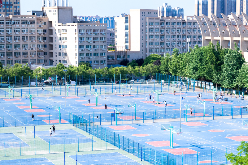 学校共有三个操场,标准田径场、风雨操场、篮球场网球场等多项体育项目的混合球场,还有文体馆和大学生活动中心。