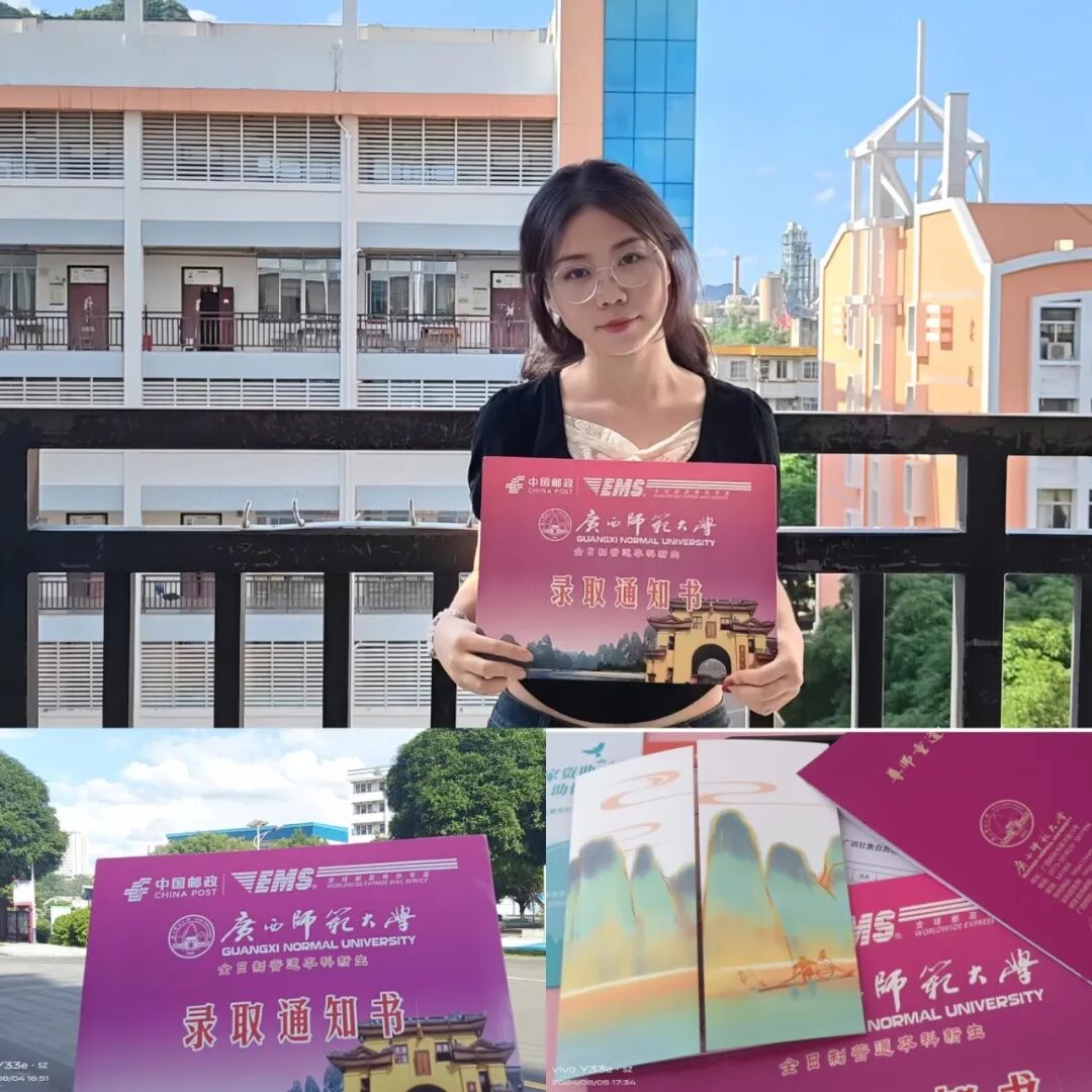 拿到录取通知书的那一刻,我知道,属于我的新篇章已经来了!面对未来的大学日子,我会认真学习,努力提升自己的综合素质,向着成为一名合格的大学生、合格的师大学子和未来的社会人不断迈进。广西师范大学!期待与你见面啦!