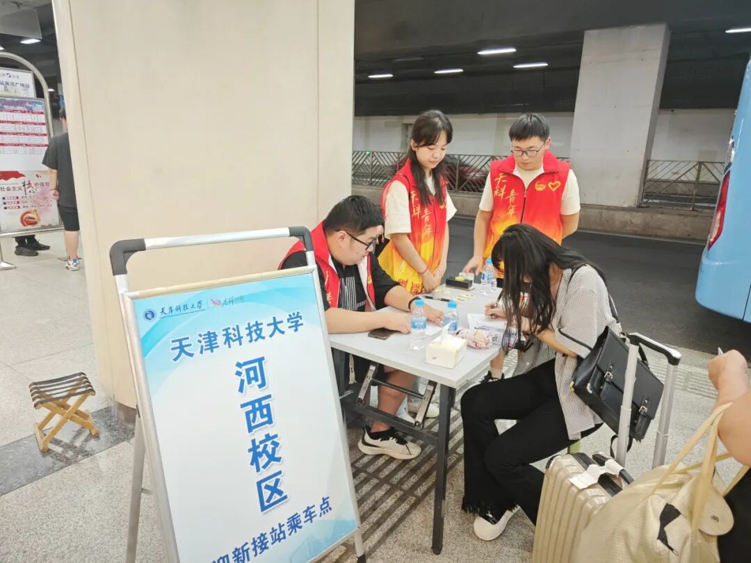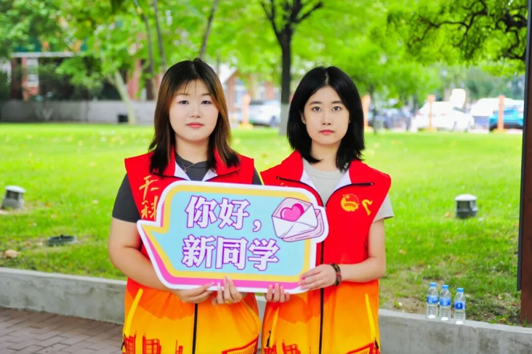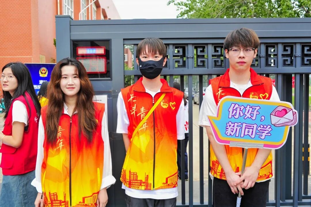 校外的“五站一场”,“红马甲”们早早在此等候,热情、周到、暖心是他们给新同学的“见面礼”。