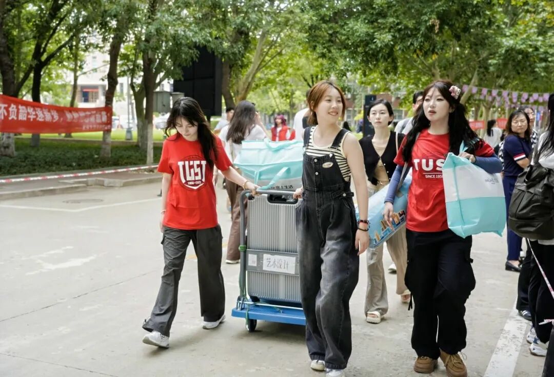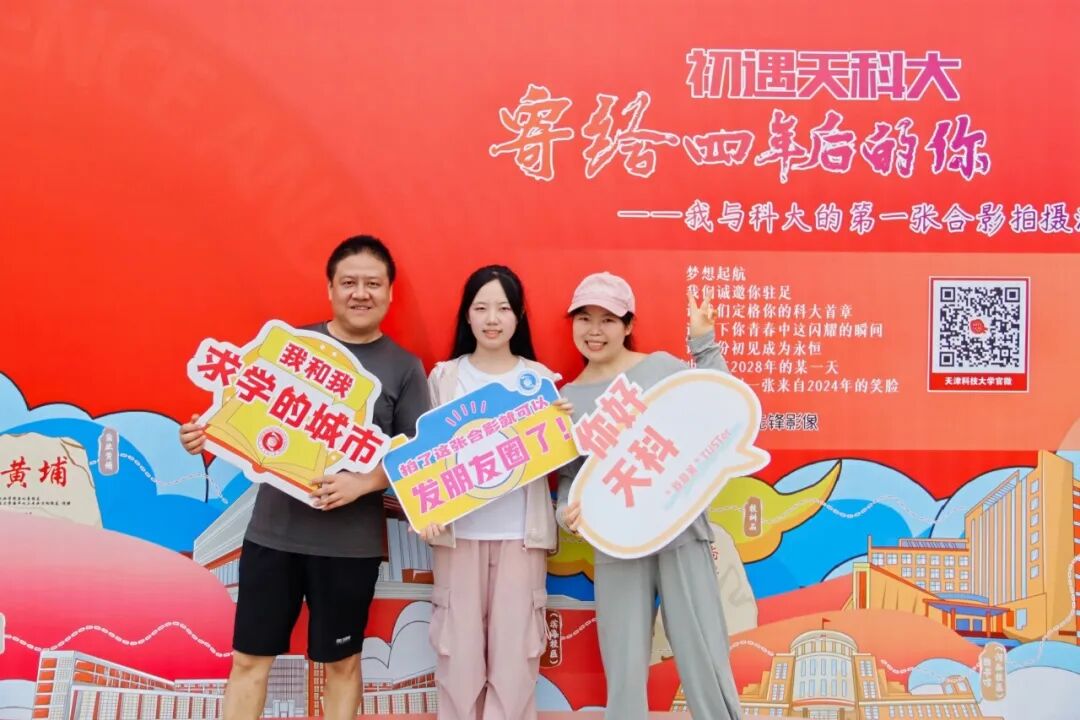 学校精心设置了迎新主题展板、合影打卡点,打造了欢乐温馨的迎新环境,营造了浓厚热烈的迎新氛围,让新生感受和记录第一次来到大学的美好时刻。各学院也是“花招”频出,“绝活”不断,结合学院文化及学科特色,设计了“颜值”爆表、“内容”吸睛的迎新活动,让各学院迎新大PK火速“出圈”。电子信息与自动化学院迎新现场“科技范”拉满,学院智电科创社团在迎新现场设置展台进行作品展示,无人机、智能车、机器人表演趣味十足,引来新生和家长的驻足关注。海洋与环境学院迎新点,一场盛大的派对盛宴!超有仪式感的签名墙、超炫酷的打卡点,还有高挂的横幅、超燃的欢迎标语,每一个细节都洋溢着满满的活力与创意!生物工程学院迎新现场以多个新生展板为装饰,凸显学院特色。设置多个工作点位,分工细致明确。在报到前向新生发布了贴心实用的入学锦囊,让新生一入学就感受到家的温暖,开启美好的大学生活之旅。艺术设计学院迎新现场设有“艺里艺气”的拍照打卡地,自主设计的新生签名墙和手绘海报,并开展“小艺带你逛校园”系列活动,由学长学姐带领2024级新生们游览校园风景,感受校园文化,品味校园魅力。其他学院也是精心布置迎新点位,将所有新生姓名拼合成“TUSTer”字样,创意DIY签到、你问我答,将科大文化、学院元素印制宣传海报,制作“新生礼包”,形式新颖、富有创意,成为迎新现场一道亮丽的风景线。