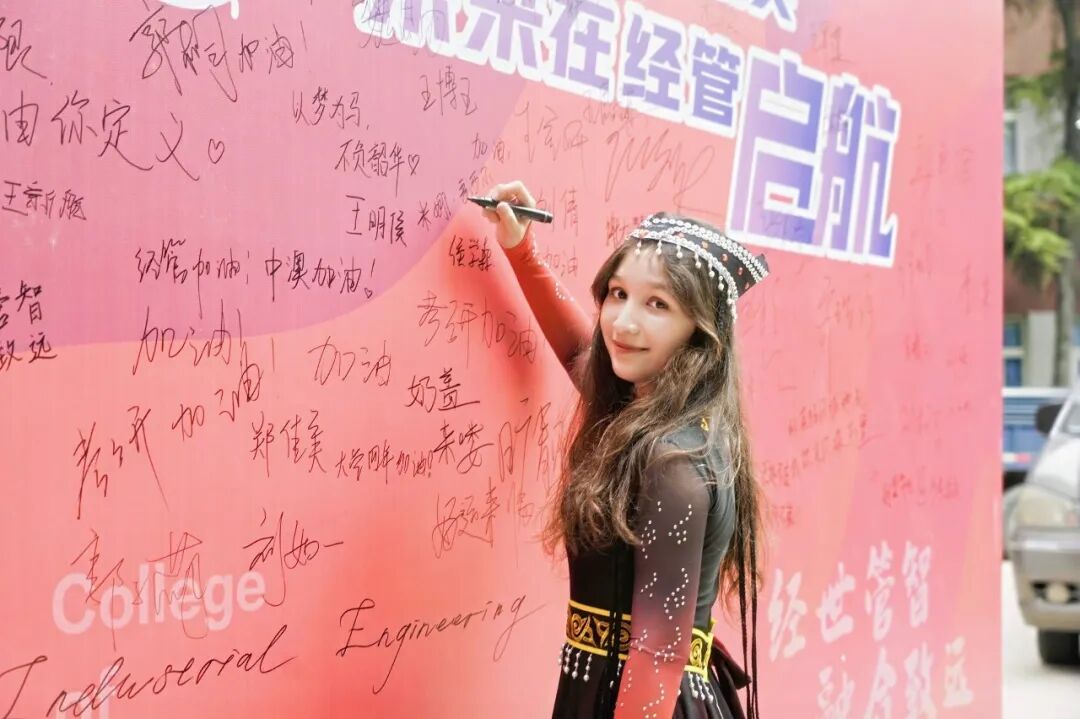 “不用问科大City不City,兼具中式对称美和现代自然美的双子楼、文化气息和烟火气息交织的生活环境,直接给出答案。想到我以后要在这里学习生活,开心到飞起。作为科大学子,我将以‘先锋标准’严格要求自己,在德智体美劳各方面做表率、当先锋。”文法学院法学类新生王清瑶说。电子信息与自动化学院2024级自动化专业新生刘熠峰也掩饰不住内心的喜悦:“一进校园,扑面而来的亲切感,好有家的感觉,一整个爱住。热情周到的服务、井然有序的流程、趣味满满的仪式,让我对即将开始的大学生活充满期待。生逢盛世,吾辈当有为。先锋科大,我来啦!”