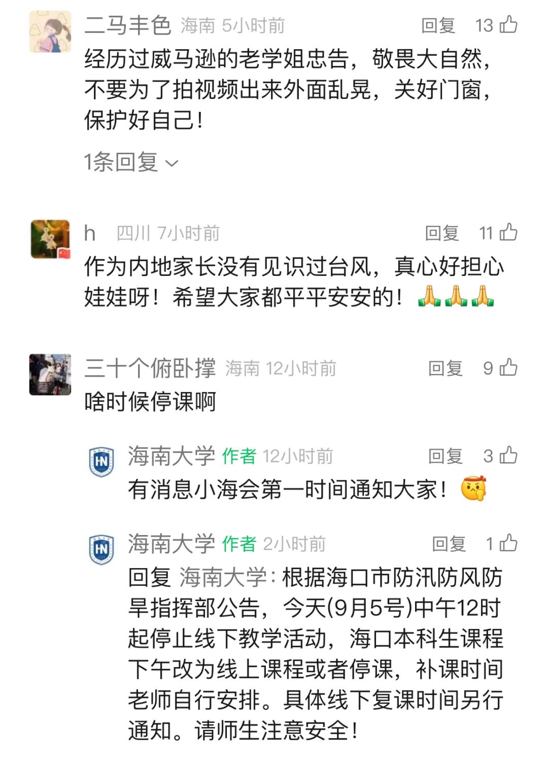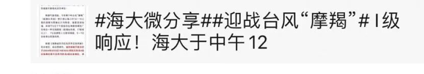 海大于今日中午12点后线下课程全面取消,请全体师生做好台风天物资准备,减少外出,注意安全!