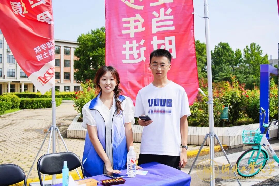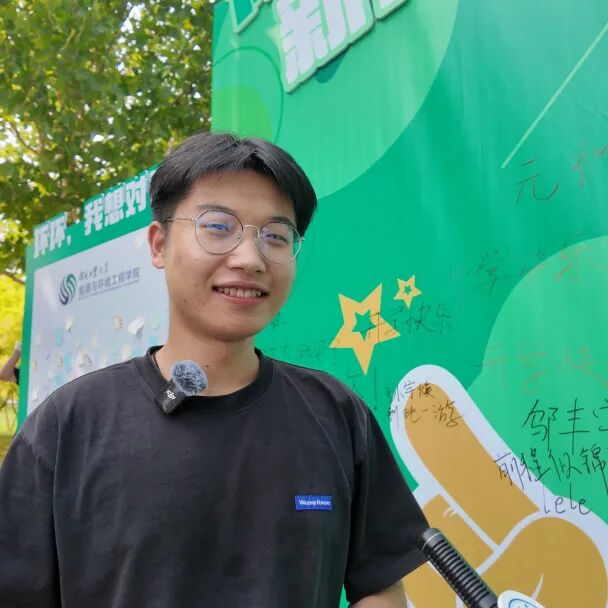 看到老师在群里发布的志愿者招募时,我就积极报名,想在迎新活动中认识更多的新同学,看到学弟学妹们的新面貌,也给自己今后的学习和生活一点新的动力。我希望学弟学妹好好学习,继续努力,可以不断超越自己。有一句话送给大家:想全是问题,做全是答案,与各位学弟学妹们共勉。