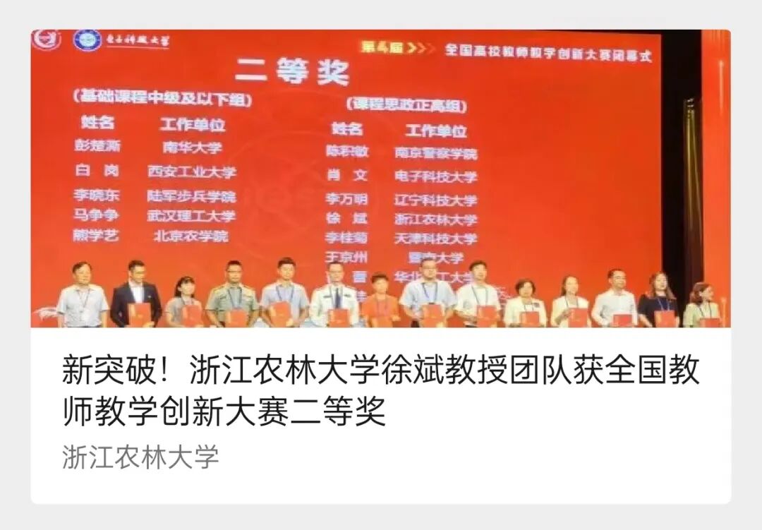 12.《学生通讯社浸润式育人的探索实践》荣获浙江农林大学教学成果奖二等奖。