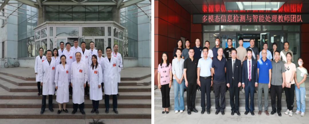 这两张图片拍摄的是新疆大学的两个“全国高校黄大年式教师团队”——应用化学研究所教师团队(左)和多模态信息检测与智能处理教师团队(右)。