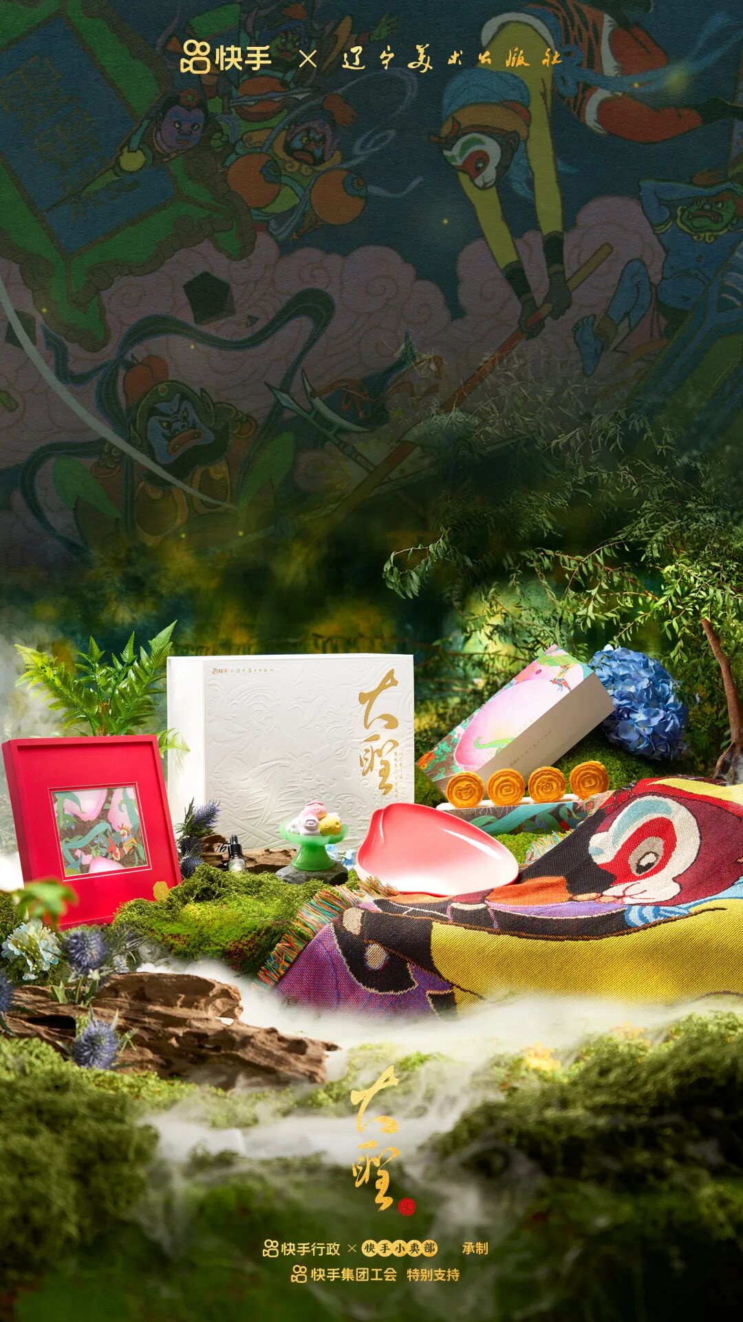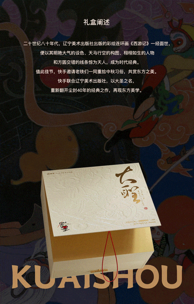 今年中秋节,快手与辽宁美术出版社联名中秋礼盒:以大圣之名,再现东方之美,邀请老铁们翻开尘封经典,共赏东方美学。