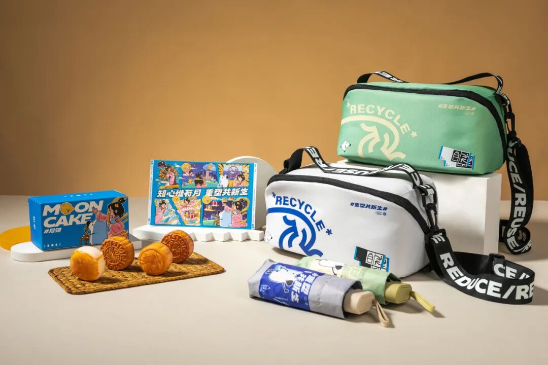 每一个再生环保挎包都由4个塑料瓶重生而来,以盲盒形式发送,每款还定制了不同颜色的惊喜,CITY WALK再也不用大包小包!