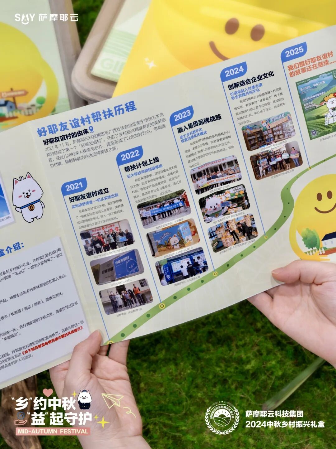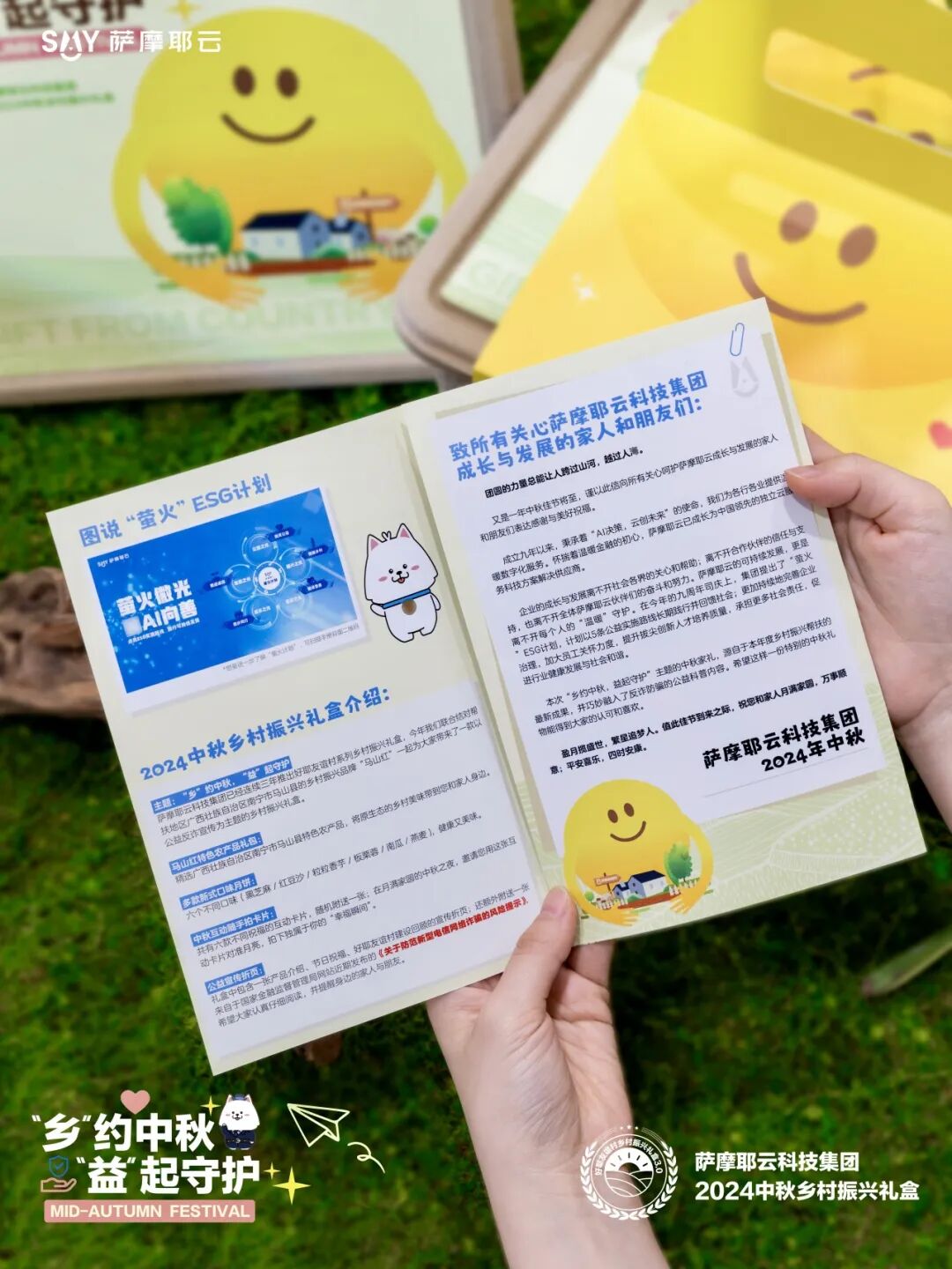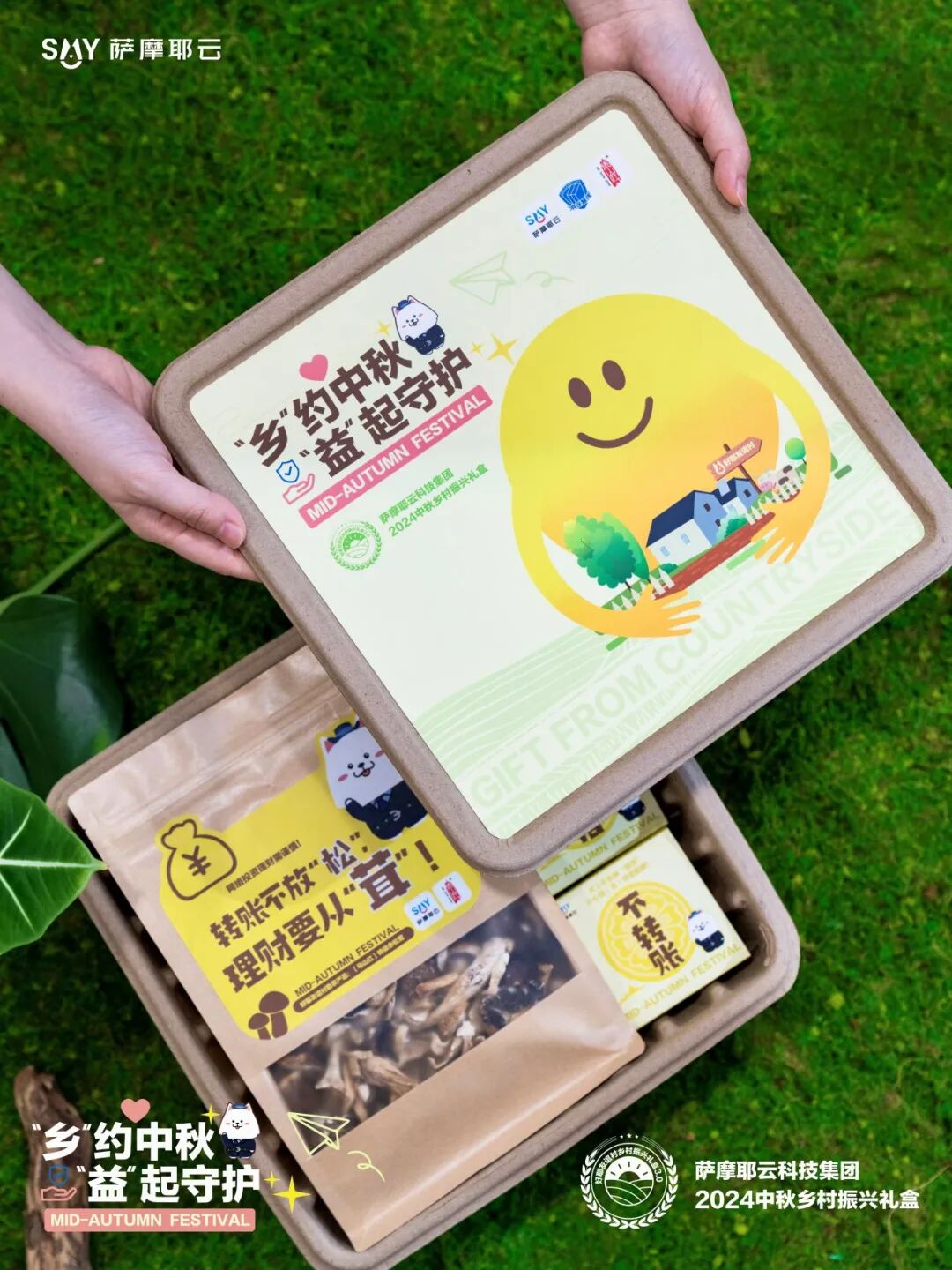 萨摩耶云科技集团已经连续三年推出好耶友谊村系列助农礼盒,今年更是将乡村振兴农产品与反诈防骗的公益宣传相结合,推出了一款公益反诈宣传为主题的乡村振兴中秋礼盒。
