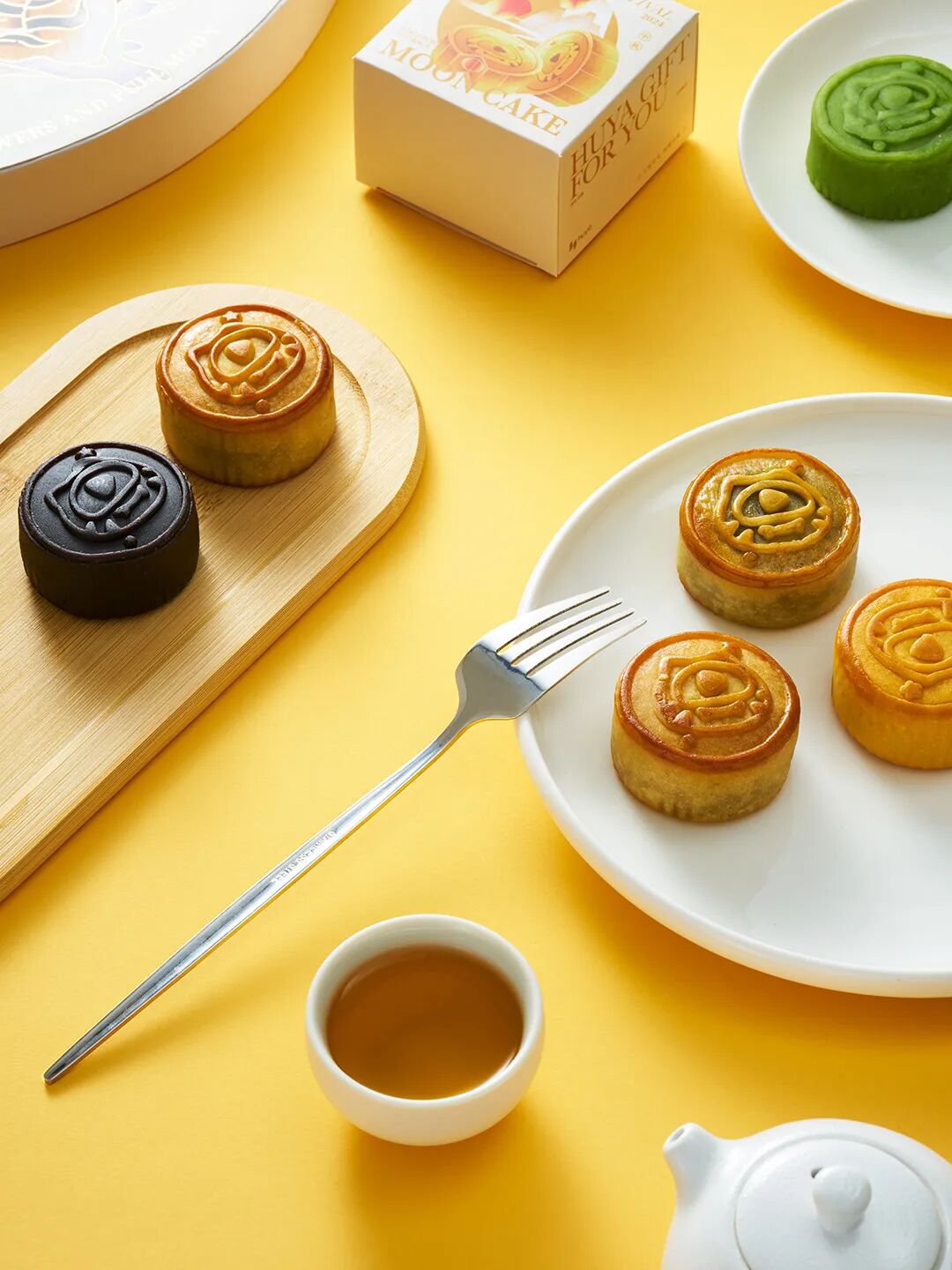 茶壶套组,一壶两杯,和家人朋友一起,喝茶赏月举杯共庆月圆;定制月饼,月夜晚风,有茶有饼,四种口味搭配,甜而不腻~
