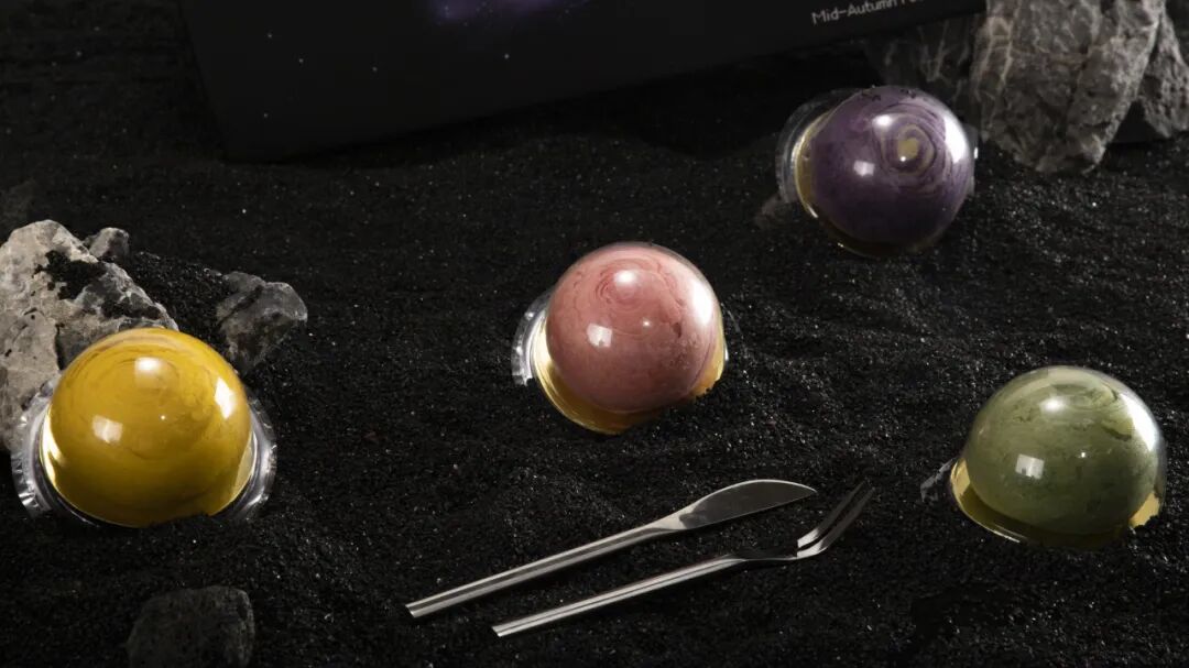 星球状的蛋黄酥,一改传统月饼的形式,不管是口感还是口味都有了新的改变。