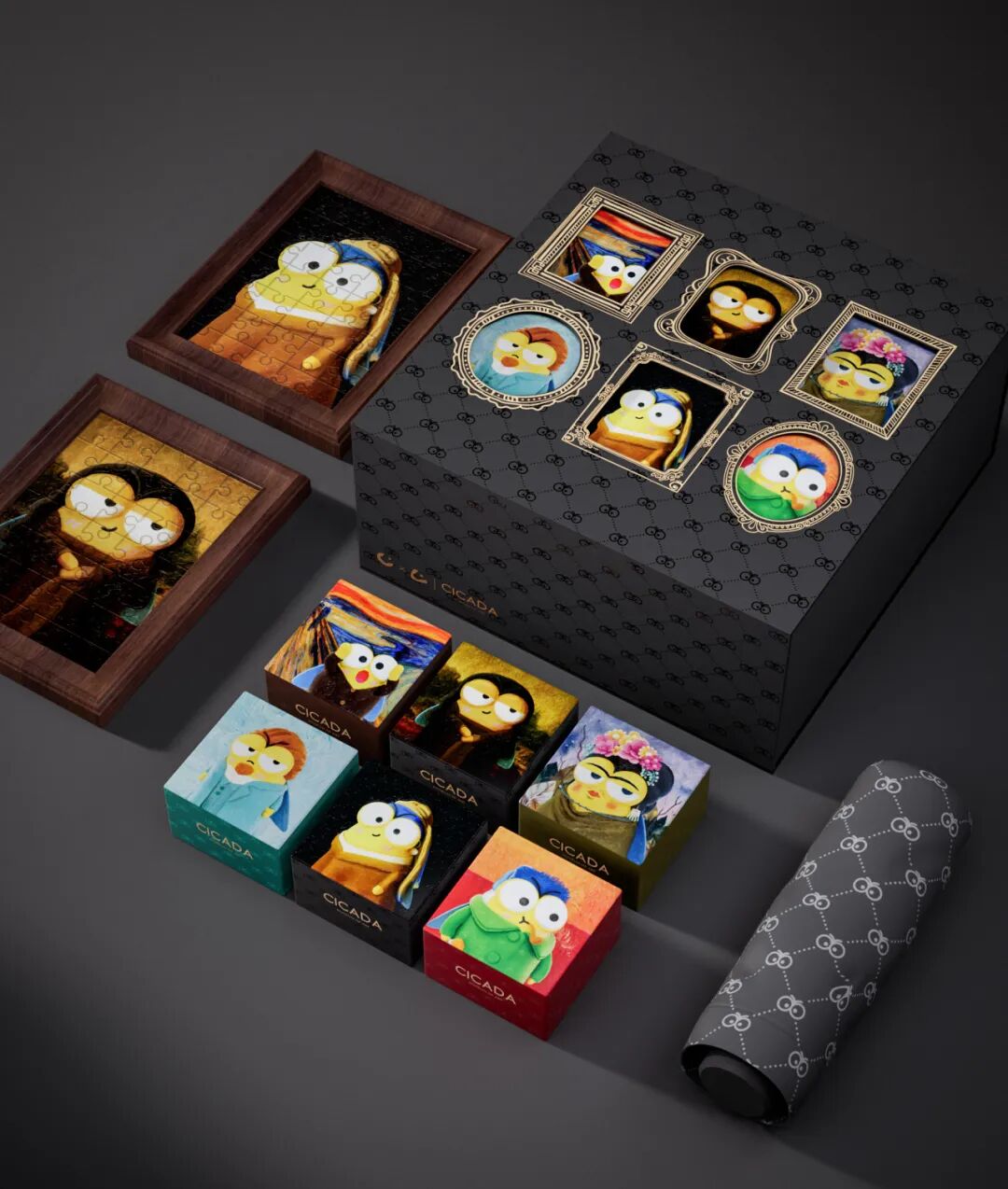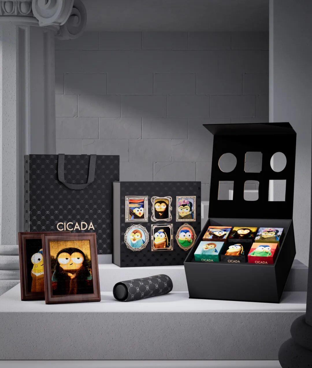 六只可爱的“名画蝉”,在精致美观的镂空油画框里扮演着六个经典角色,蒙娜丽莎蝉、呐喊蝉、戴着耳环的珍珠少女蝉...独具匠心的外观设计和优选材质,不仅可以作为典藏佳品,亦能当作实用的双层收纳盒。