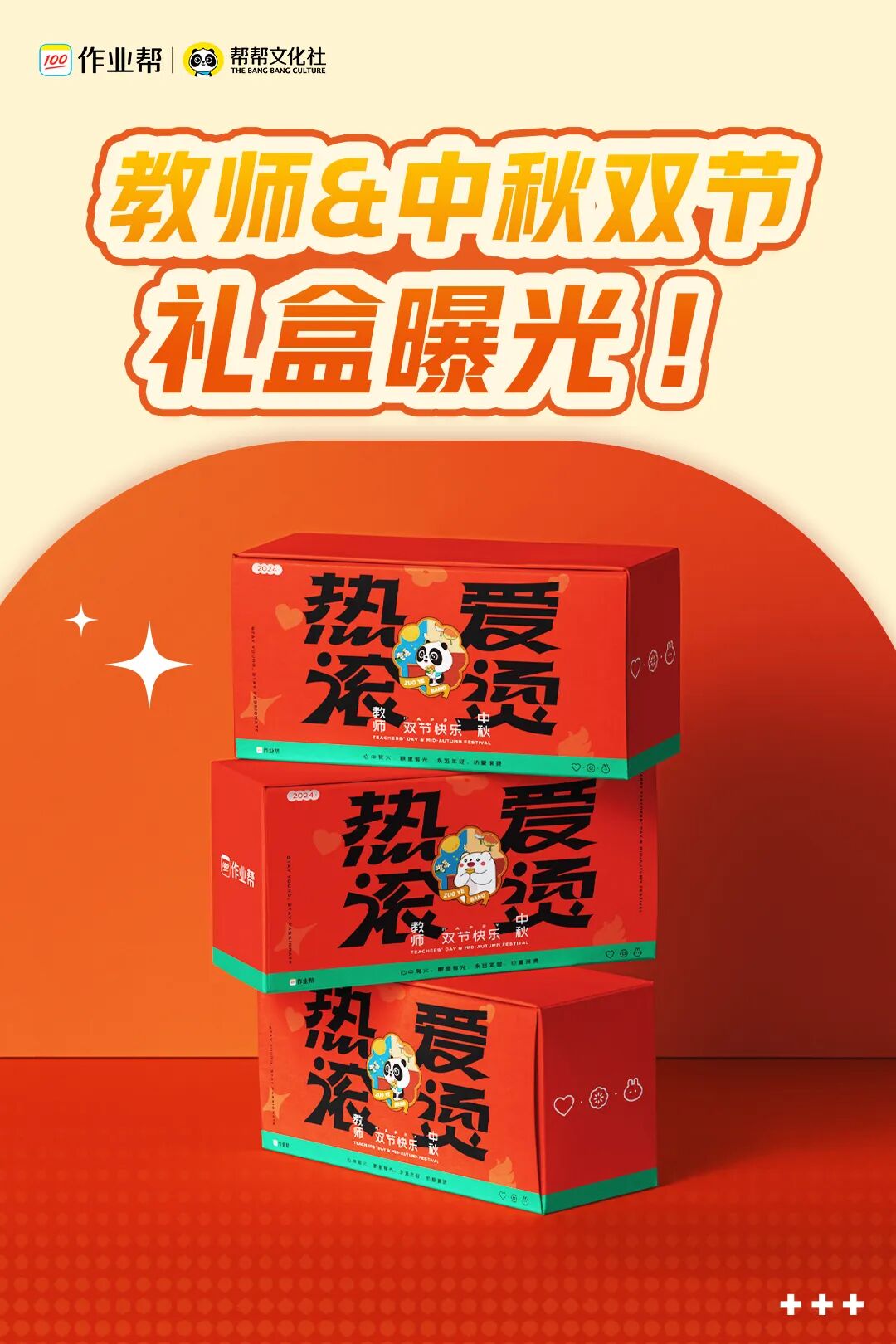 今年中秋节,作业帮为大家准备了以“热爱滚烫”为主题的教师&中秋双节之礼,希望大家能够怀着一颗赤诚之心,在热爱的教育世界里持续投入,持续发光,成就每一个孩子的学习梦想。