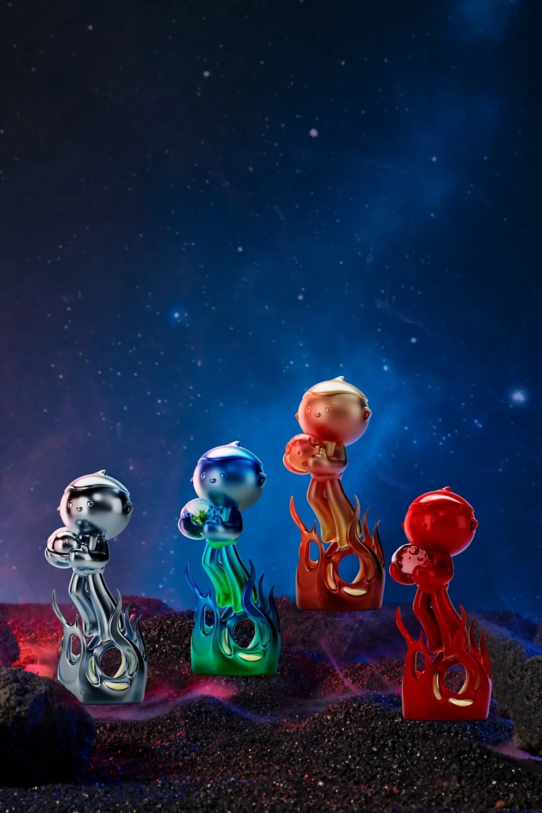 今年欢欢公仔采用全新的版本,如同欢欢造型的升级,企业也在不断的成长、壮大和稳固进步。公仔底座火焰的的造型,具有向上的生命力,表达趣丸对未来科技领域的探索不止。