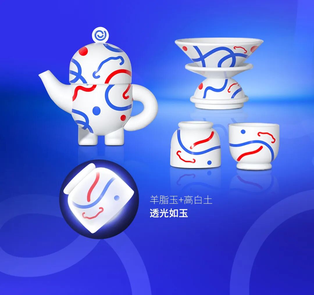 咖啡茶具选择了温润的白瓷,承非遗之匠心,作潮尚之设计,茶咖双享。杯体透光如玉,声如磬鸣,为团圆时刻增添一抹亮色。