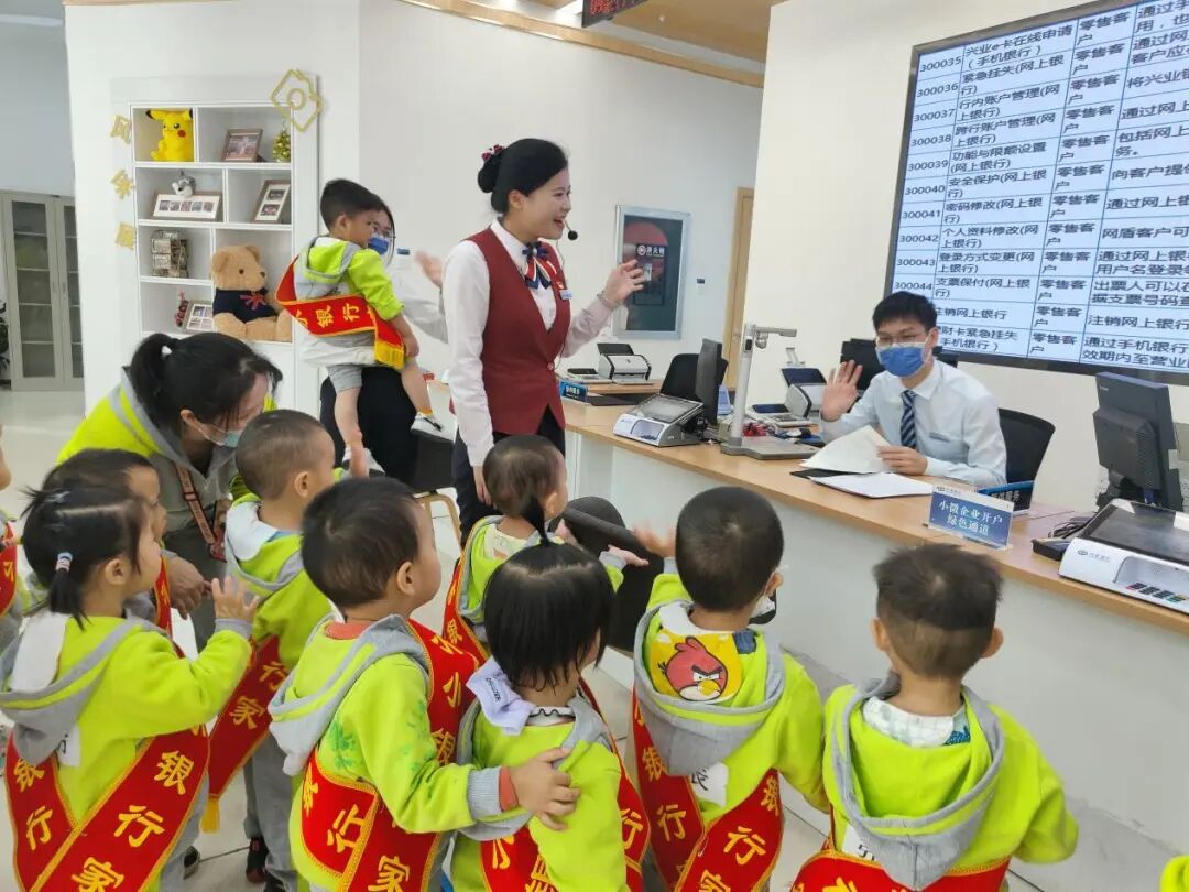 暑假里,桂林分行营业部来了一群“小小银行家”,营业部员工王佳佳化身老师,带领萌娃们参观营业大厅,为他们讲解取号机、柜员机、自助发卡机等银行设备的作用及使用方法。孩子们分别扮演客户、保安人员、大堂经理、柜员等角色,对银行中各个岗位有了初步认识。当孩子们甜甜地说“谢谢老师”时,王佳佳也同样笑开了花!
