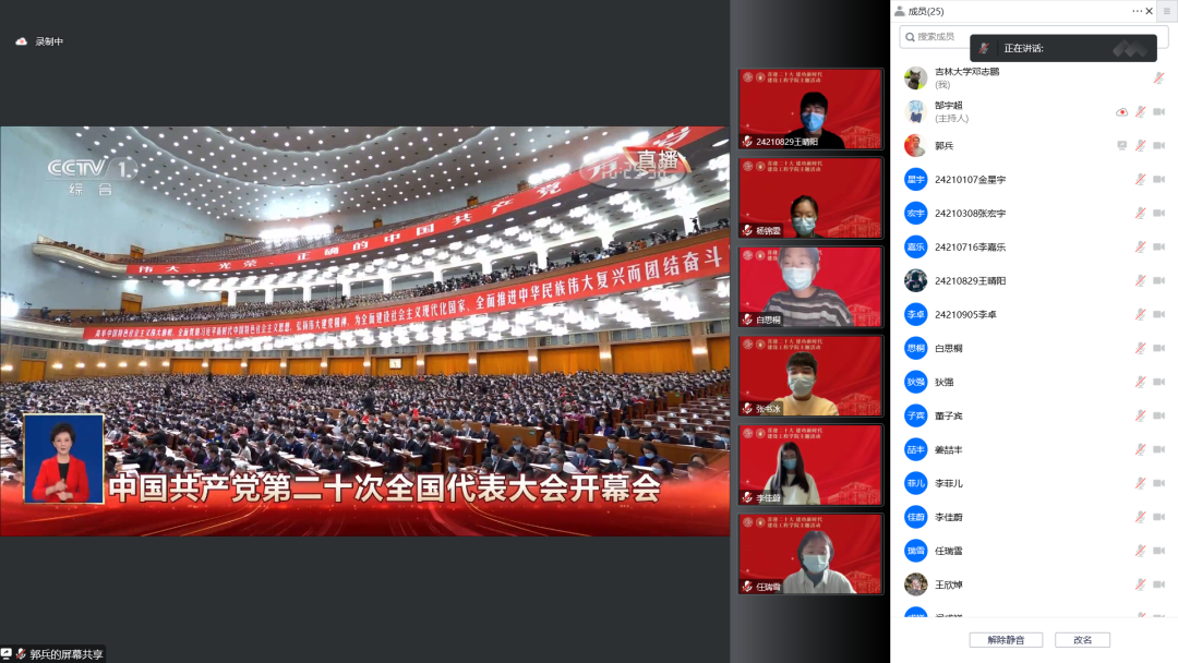 建设工程学院学生党支部组织开展全体党员、发展对象、积极分子收看党的第二十次全国代表大会主题党日活动。