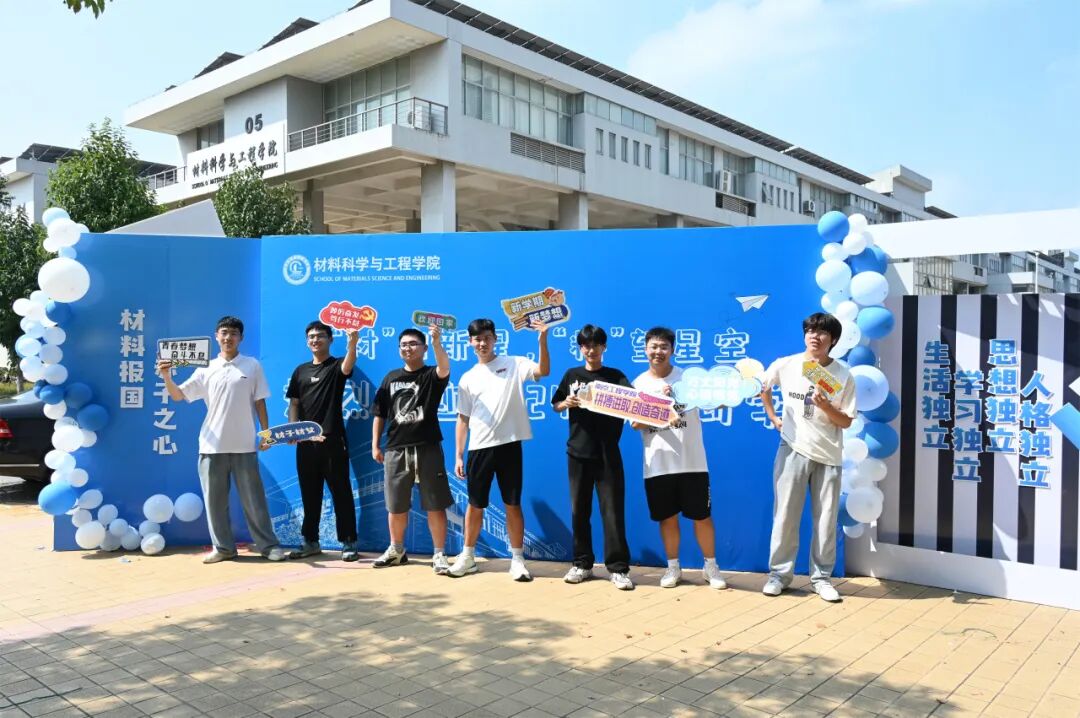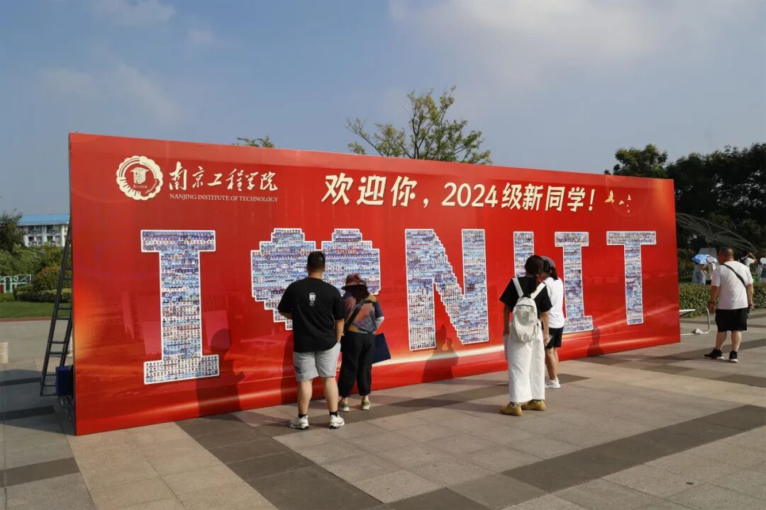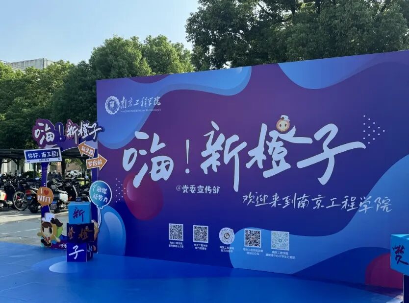 由新生照片拼成的“笑脸墙”、台阶彩绘