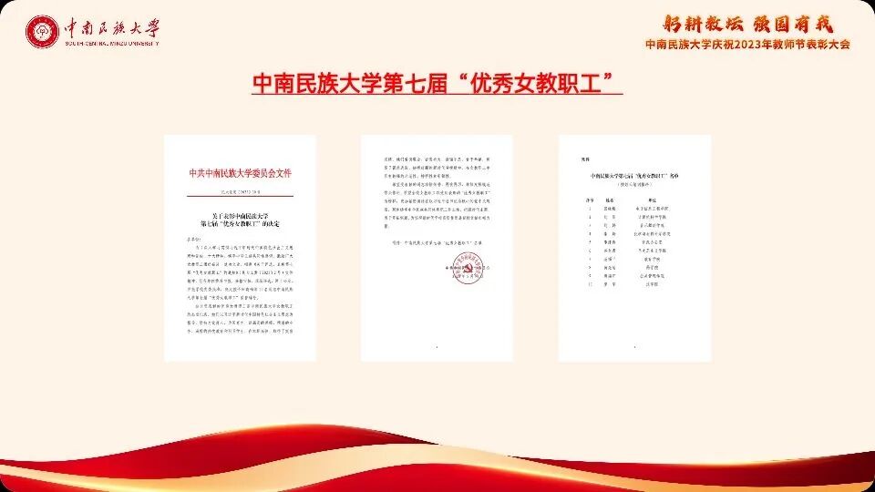 大会在雄壮的国歌声中开幕。全体人员共同重温了习近平总书记在中共中央政治局第五次集体学习时的重要讲话精神。随后,校党委副书记、副校长宋发军宣读了表彰决定,左洪涛等30名从教执教满30年的教职工、彭柳等53名获省部级及以上荣誉奖励的教职工、苏亚民等4名教学标兵、田园子等9名教学先进个人、胡纪平等119名2021-2022学年优秀班导师以及田晓梅等10名优秀女教职工受表彰。校党委常委为受表彰教职工代表颁奖。