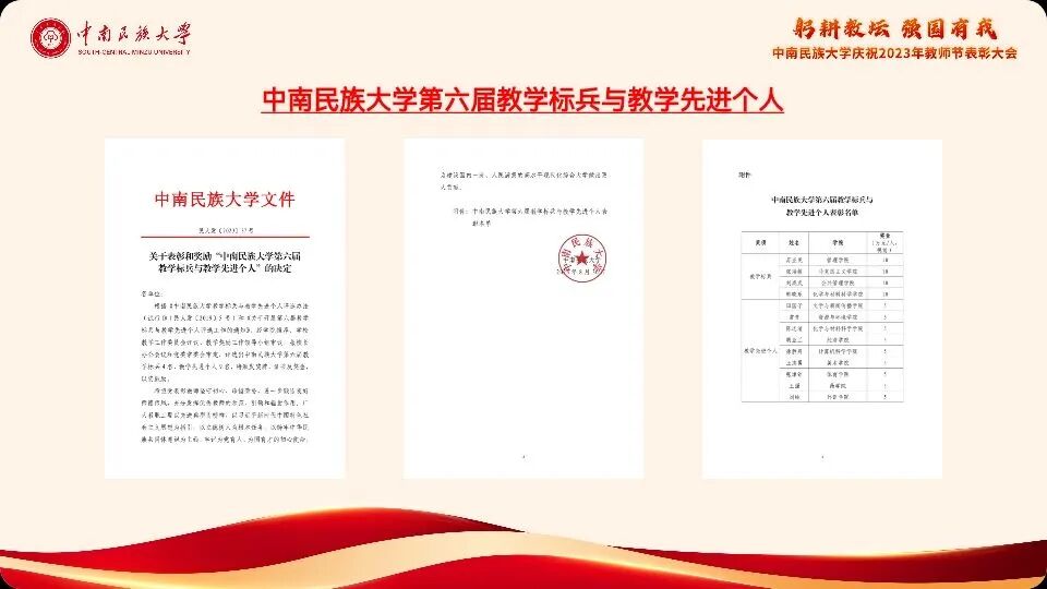 善之本在教,教之本在师。我们的教师,默默奉献、甘守三尺讲台,用实际行动诠释了“春蚕”、“红烛”、“灯塔”这些光荣称号的深刻内涵,用不懈的努力锻造了民大人的光辉群像。