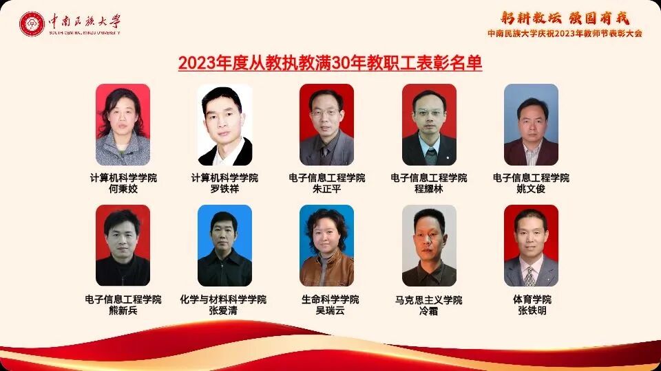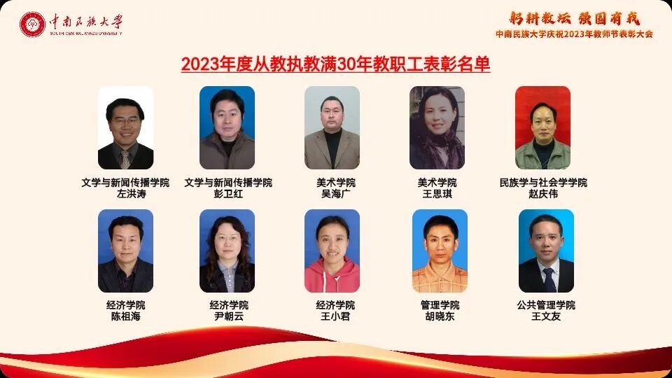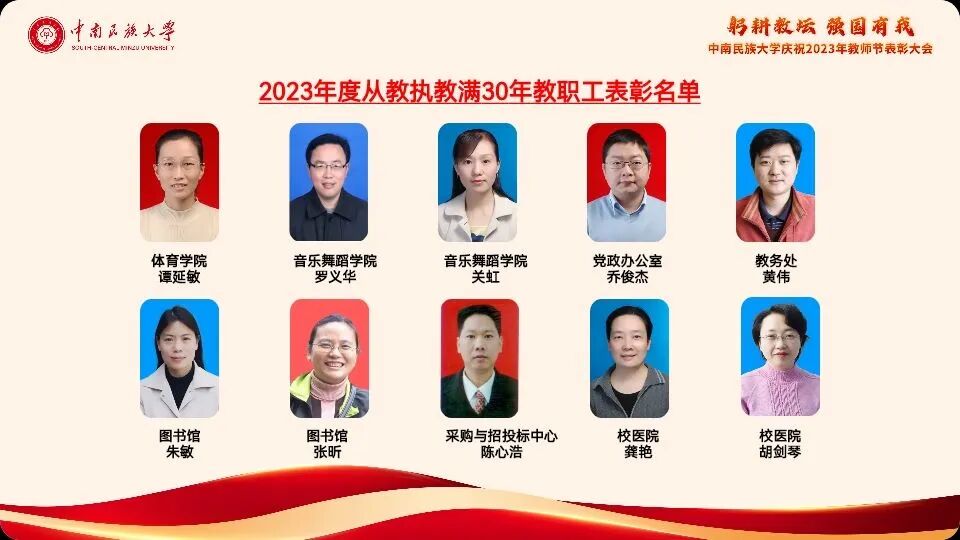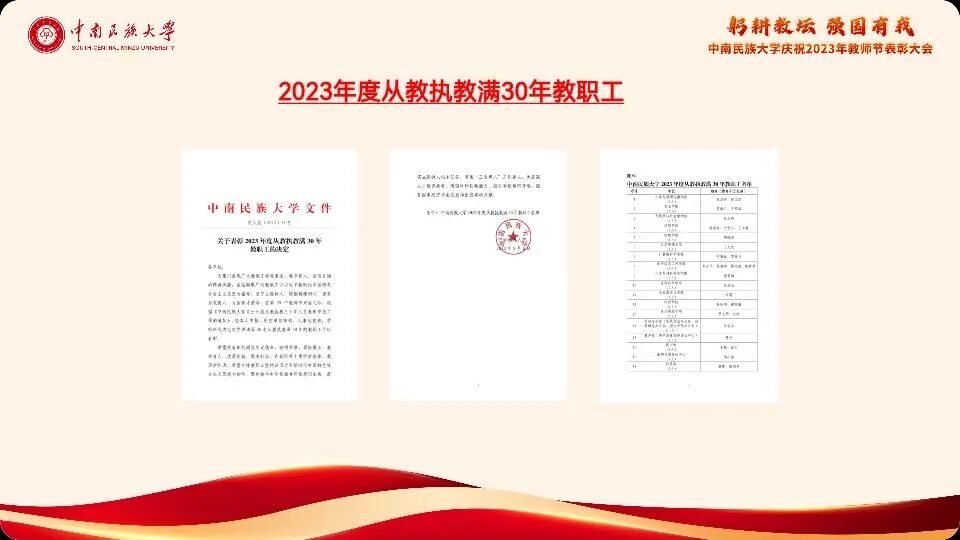 2023年度从教执教满30年教职工